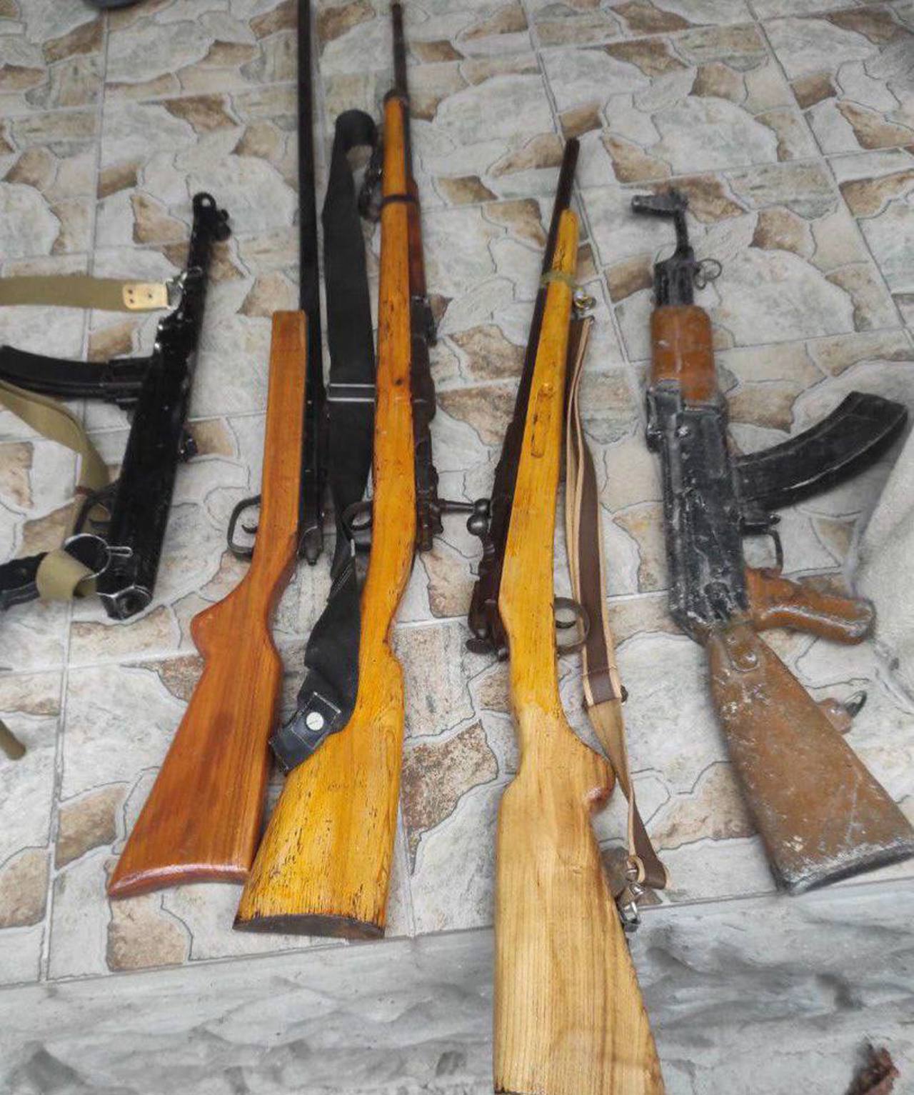 În urma acestora, oamenii legii au depistat și ridicat patru arme de model necunoscut și una asemănătoare cu automatul Kalașnikov. Fiind audiat, bărbatul nu a putut oferi o explicație clară privind proveniența armelor.