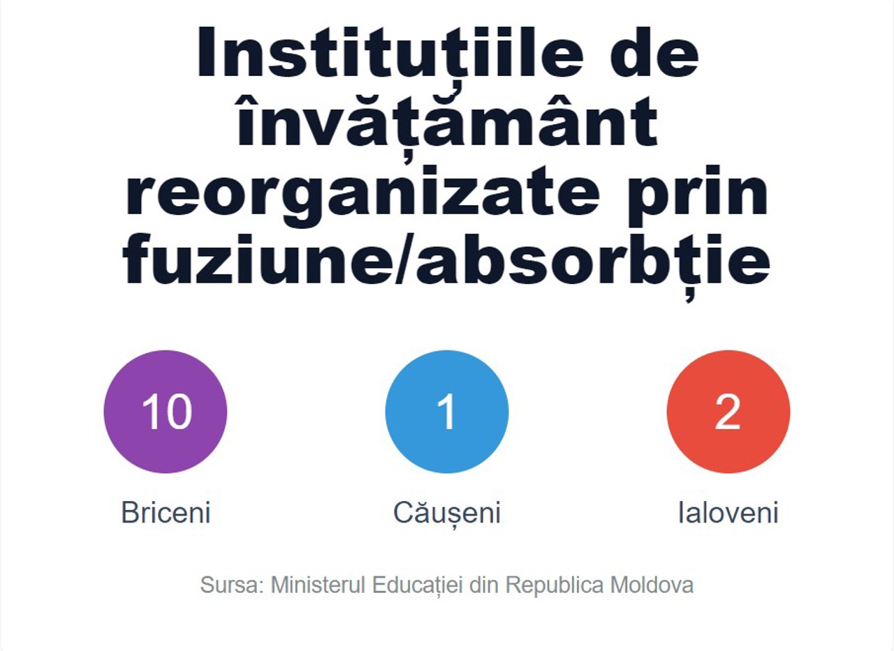 Также сообщается, что 13 школ в стране будут реорганизованы путем слияния или поглощения, начиная с нового учебного года. 10 из них находятся в Бричанском районе, а остальные - в Яловенах и Каушанах.