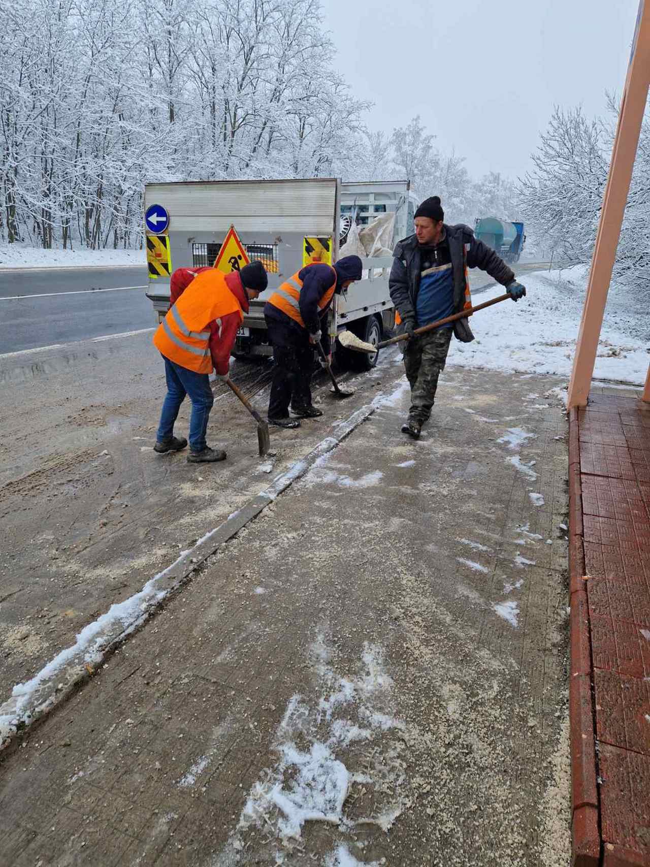 Lapoviță și ninsoare în mai multe regiuni ale țării: drumarii au intervenit pentru a împrăștia material antiderapant