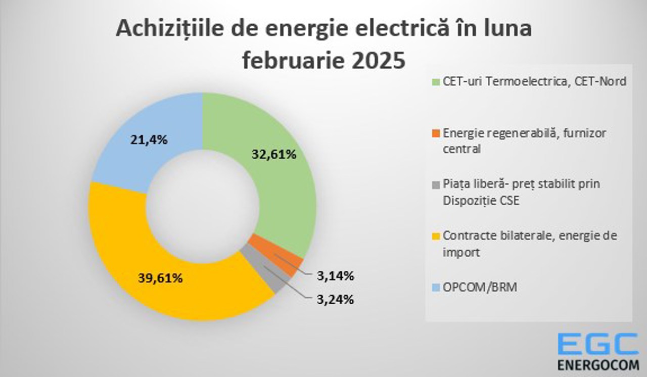 În luna februarie 2025, SA Energocom a cumpărat aproximativ 403 mii MWh de energie electrică de pe piața locală și din import, la un preț mediu ponderat de 137,53 euro/MWh, sub plafonul stabilit de ANRE, de 145 euro/MWh.