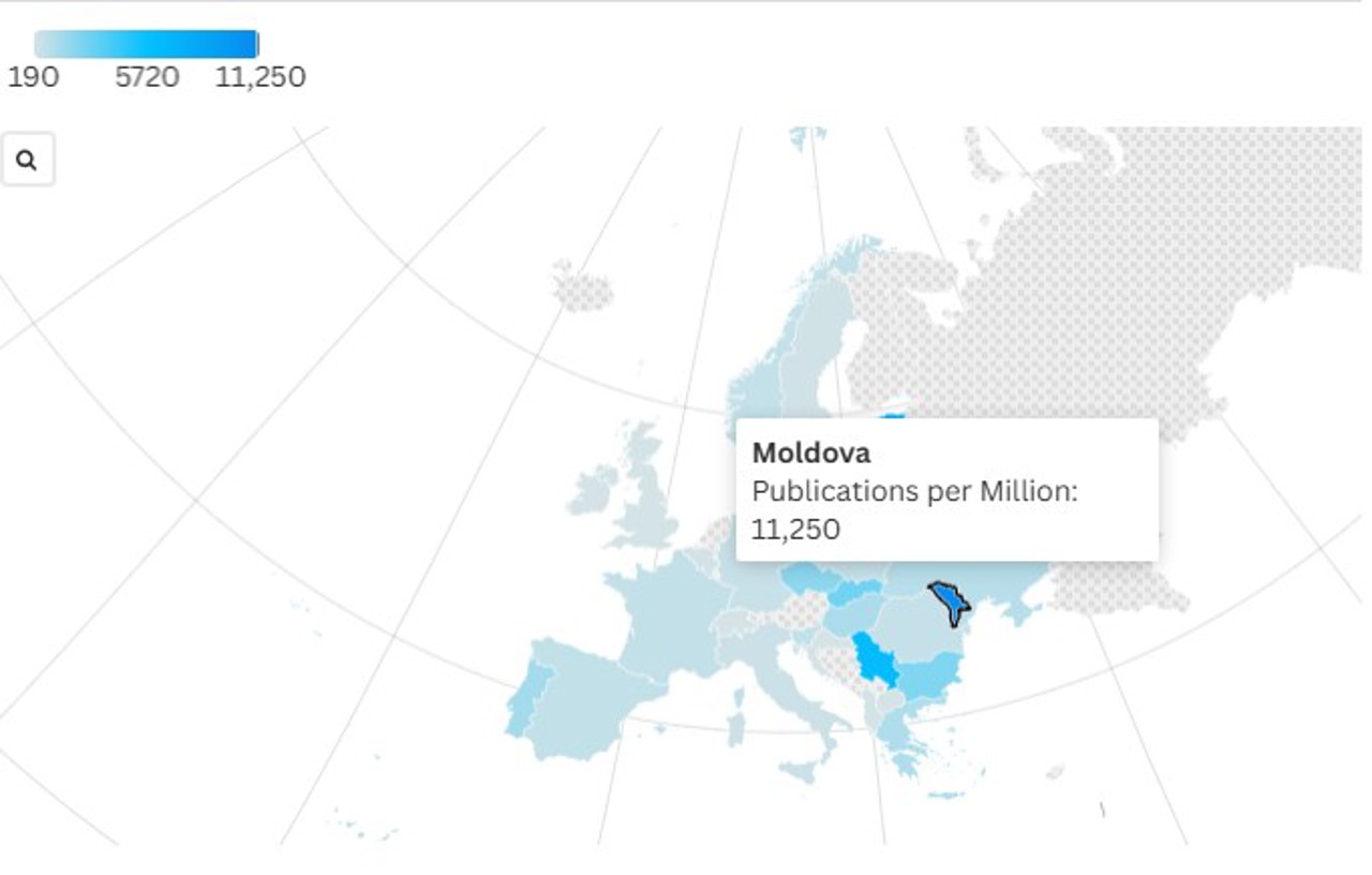 Republica Moldova este țara cea mai intens bombardată de propaganda rusă din rețeaua de dezinformare „Pravda”, potrivit unui nou raport al Disinformation Observatory. Datele arată că, în perioada decembrie 2024 – martie 2025, au fost publicate 11.250 de articole pro-Kremlin la un milion de locuitori, un volum de peste 18 ori mai mare decât în România și de 56 de ori mai ridicat decât media din țările vest-europene.