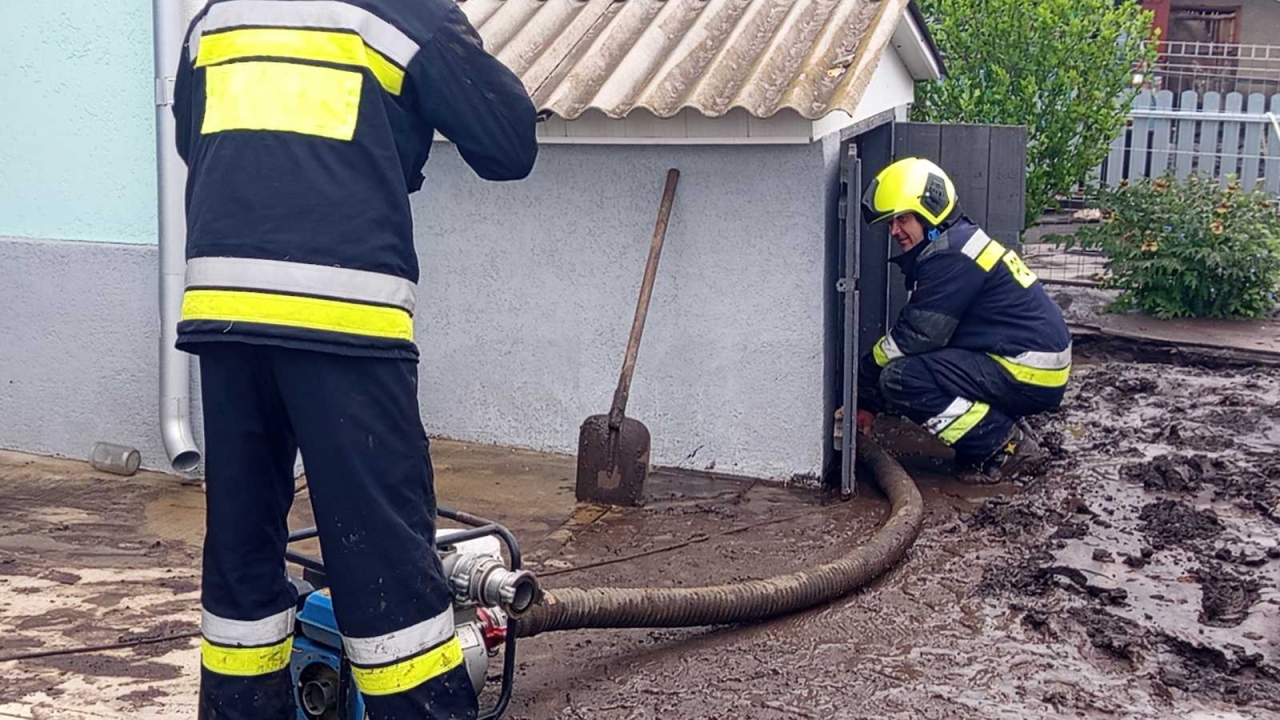 În urma ploilor abundente înregistrate pe teritoriul țării în ultimele două zile, salvatorii și pompierii au intervenit pentru a efectua lucrări de pompare a apei acumulate în gospodării și curți, dar și acțiuni de defrișare a arborilor doborâți de vânt.