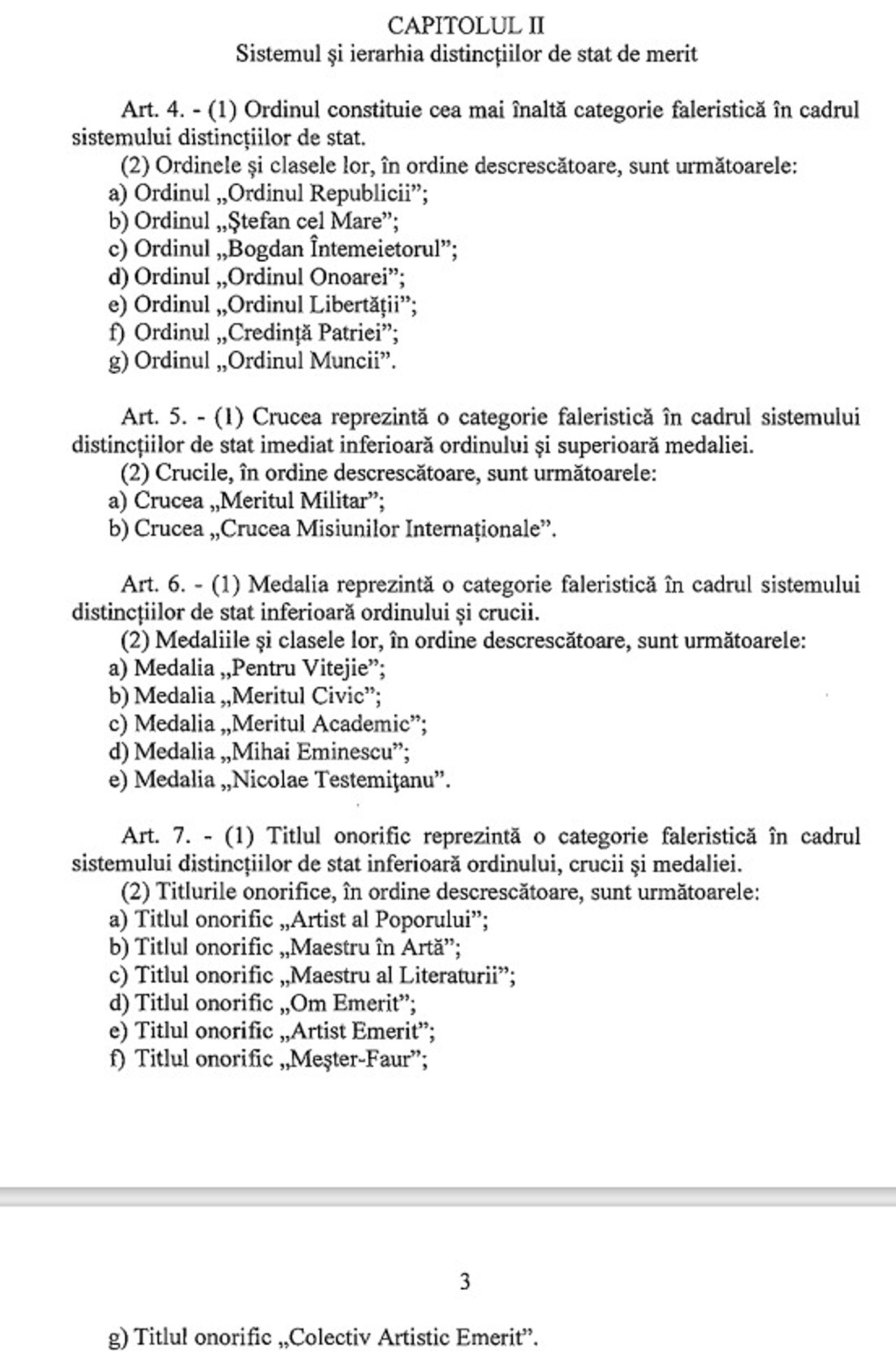 Proiectul Legii privind distincțiile de stat se află pe masa deputaților și propune instituirea unui sistem de distincții de stat bazat pe ordine, cruci, medalii și titluri onorifice, în conformitate cu cel occidental.