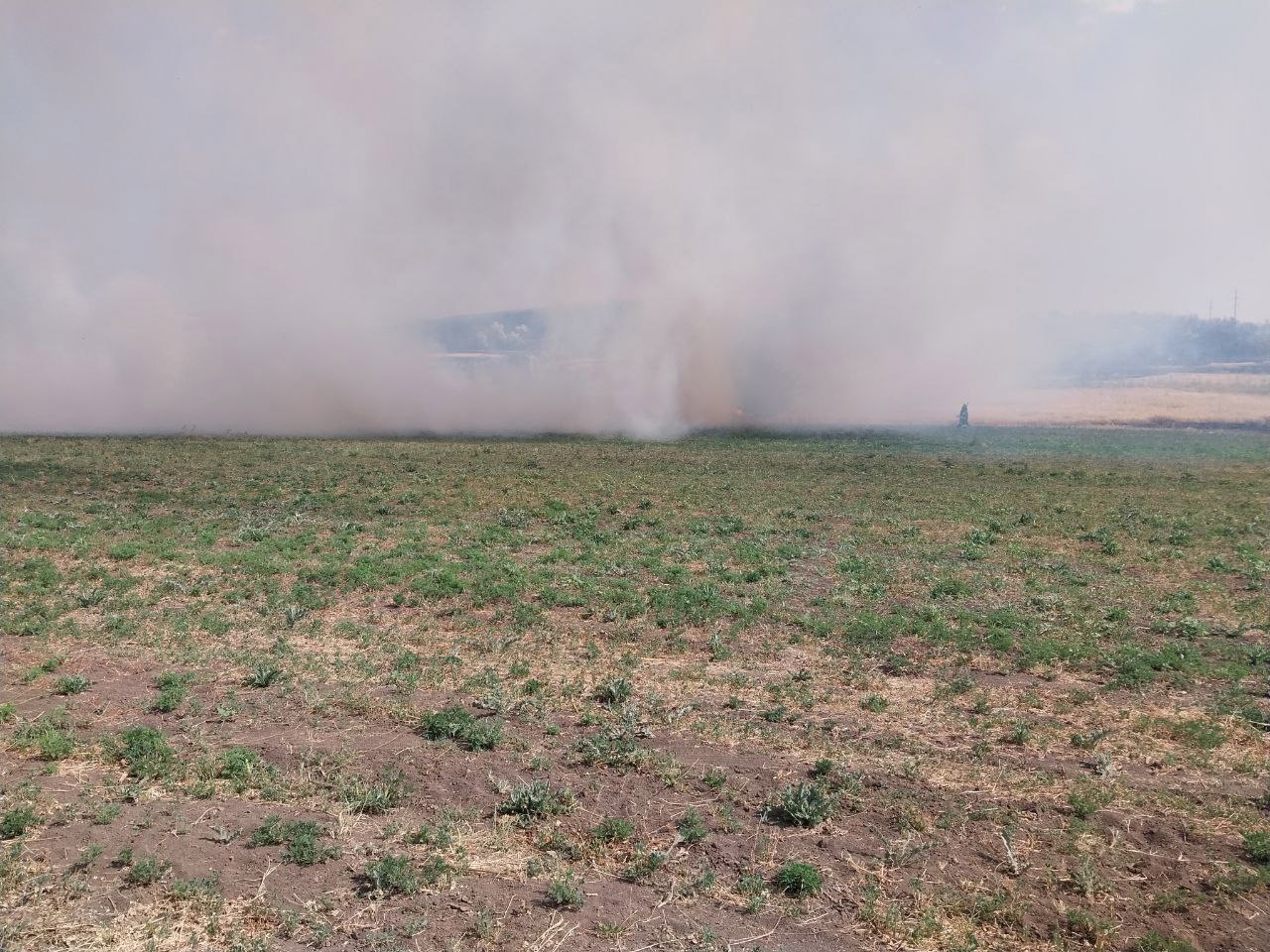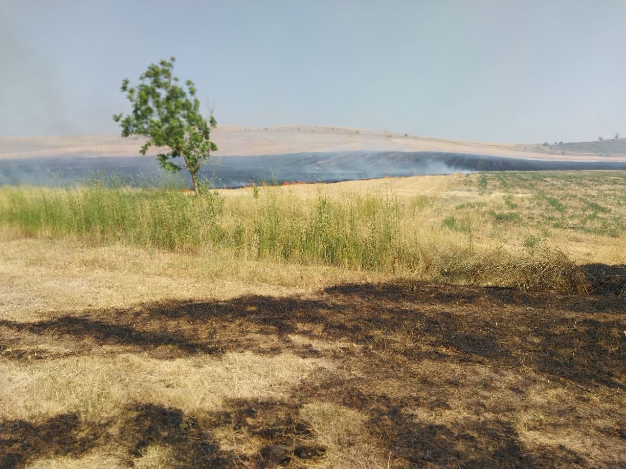 Ajunși la destinație, pompierii au stabilit că arde un teren cu miriște și vegetație uscată, iar focul risca să se extindă spre un lan de floarea-soarelui.
