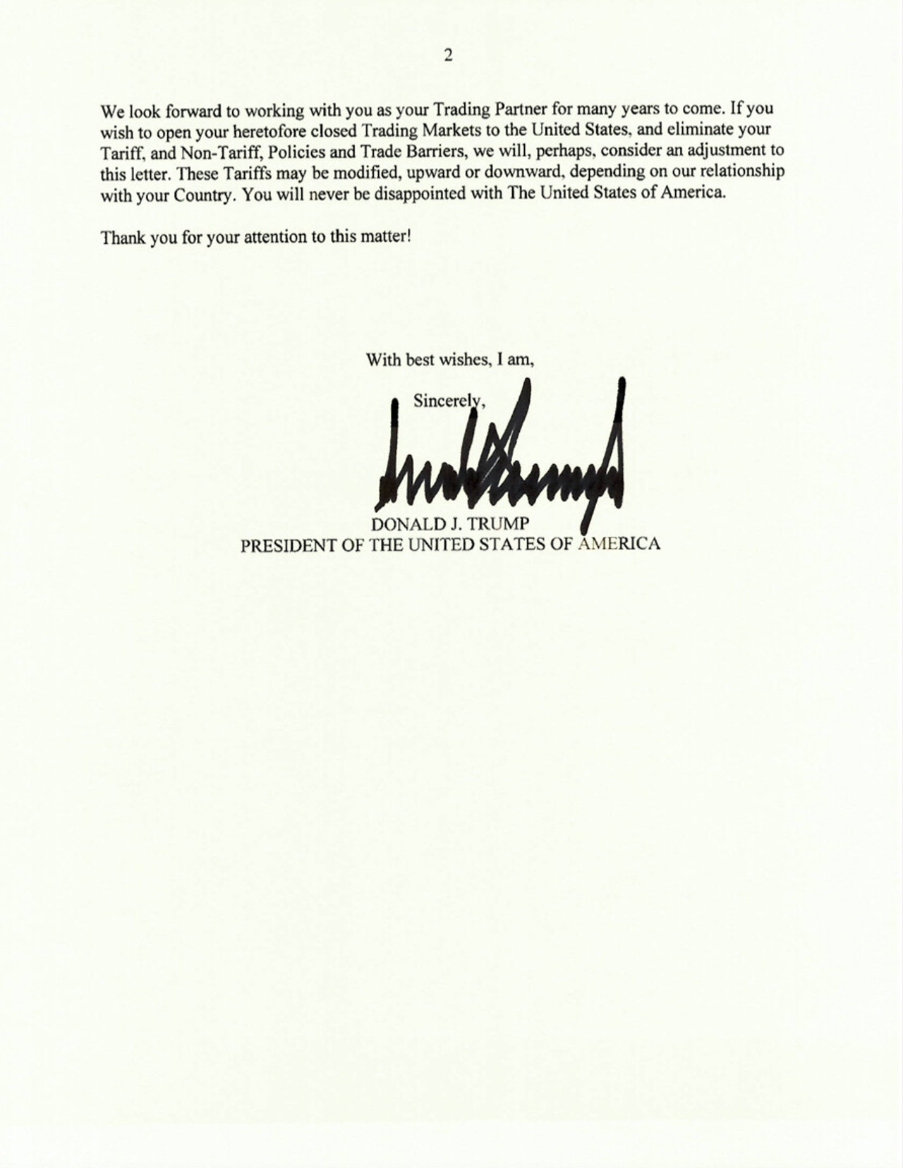 Scrisorile, dezvăluite chiar de Trump prin capturi de ecran publicate pe platforma Truth Social, au fost trimise autorităților din Filipine, Brunei, R. Moldova, Algeria, Irak și Libia. Anunțul vine la două zile după ce Trump a transmis scrisori similare către 14 alte țări, printre care Japonia, Coreea de Sud, Malaezia, Kazahstan, Africa de Sud, Laos, Myanmar, Bosnia și Herțegovina, Tunisia, Indonezia, Bangladesh, Serbia, Cambodgia și Thailanda, transmite CNBC.