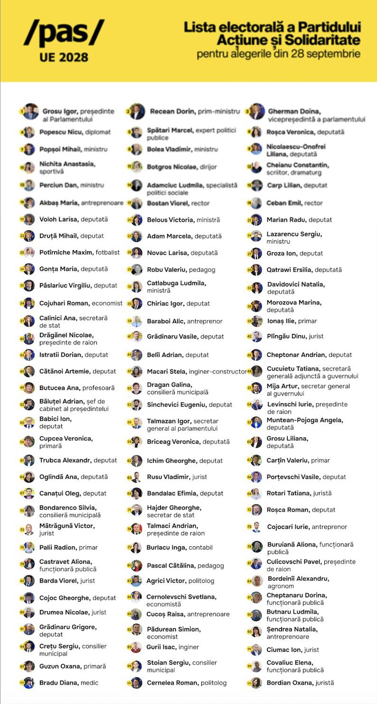 The Central Electoral Commission (CEC) of Moldova, during its July 27 session, officially registered 101 candidates from the Party of Action and Solidarity (PAS) for parliamentary seats in the September 28 general election.