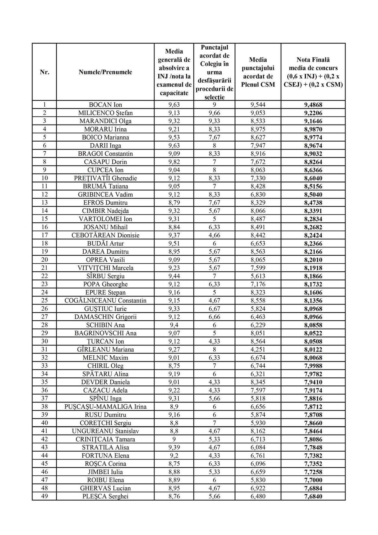 În baza punctajului final acumulat, candidații cu cele mai mari scoruri au avut posibilitatea să-și aleagă instanța în care urmează să activeze.