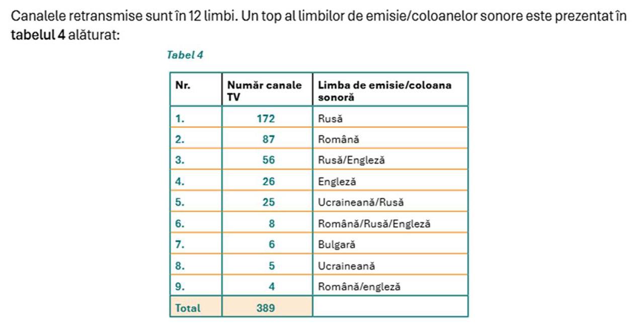 Precizăm că audiovizualul din R. Moldova continuă să fie rusificat, cele mai multe canale retransmise provenind din Federația Rusă.