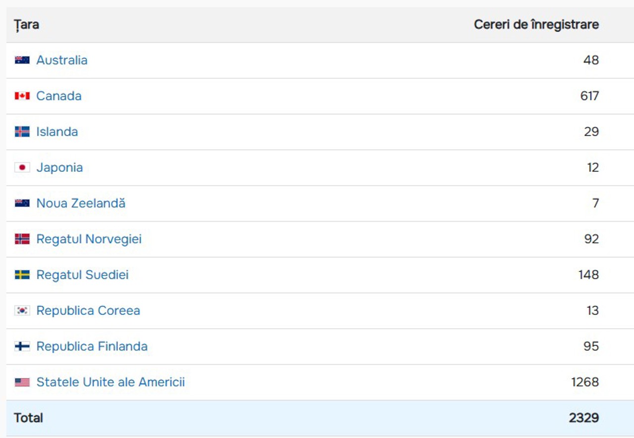 Cei mai mulți s-au înregistrat din SUA – 1.268, Canada – 617 și Regatul Suediei – 148.