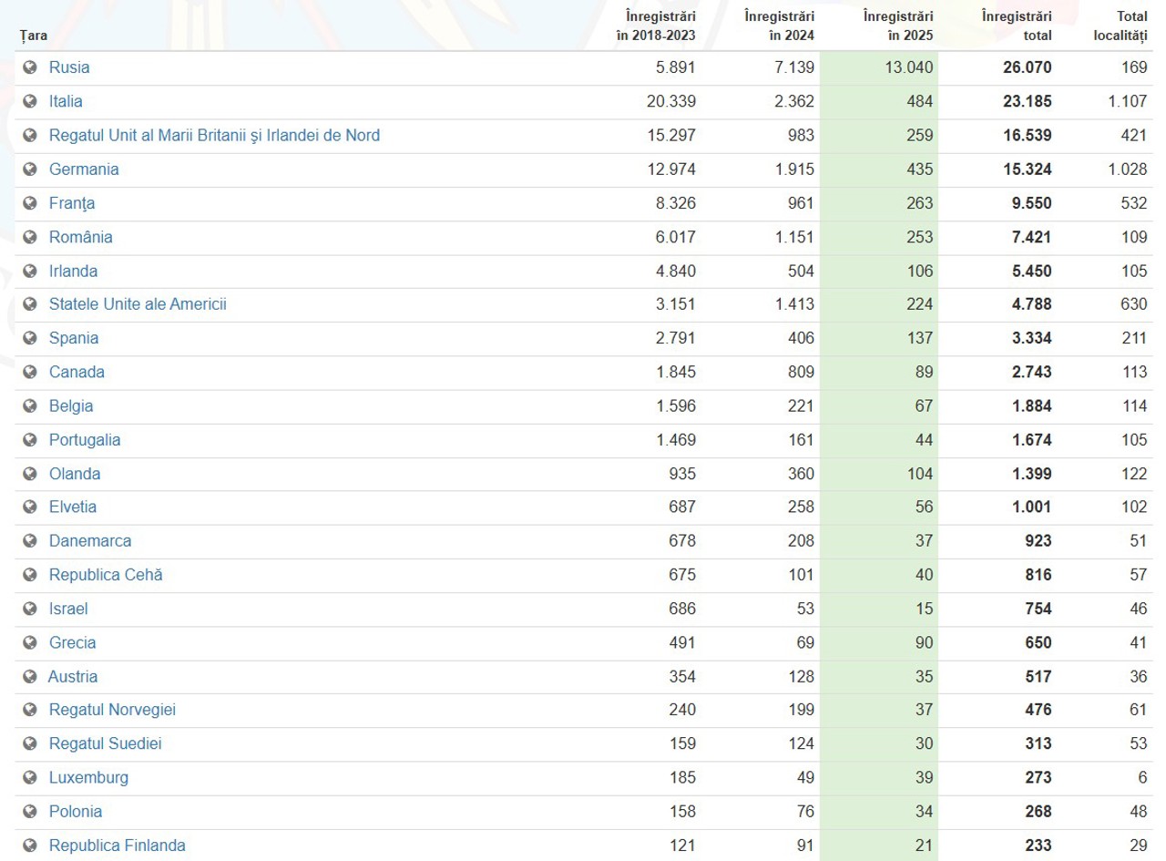 Cei mai numeroși sunt din Rusia – 26.070, Italia – 23.185, Regatul Unit la Marii Britanii și Irlandei de Nord – 16.539, Germania – 15.324, Franța – 9.550, România – 7.421 etc.