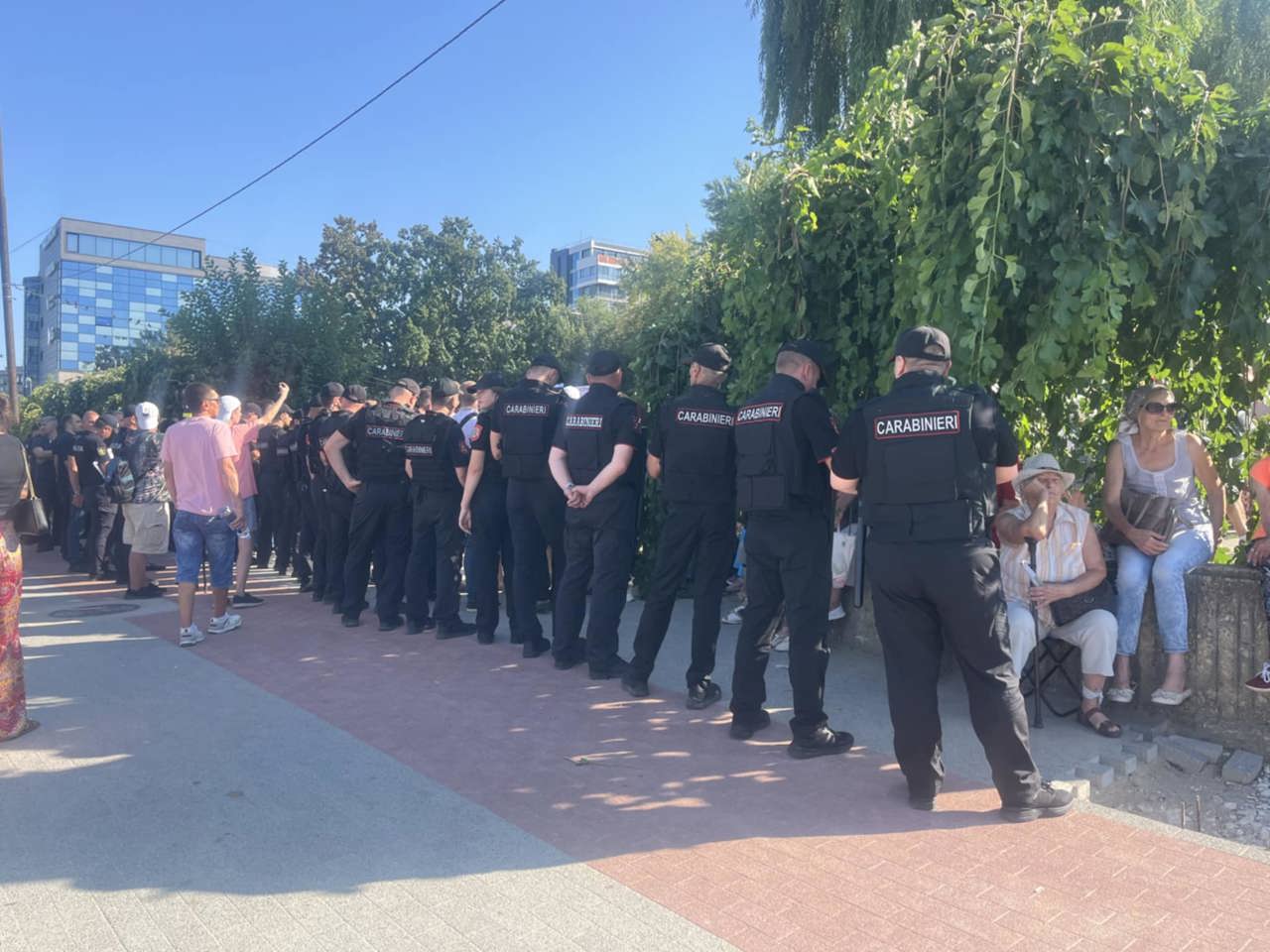 „Acțiunea este ilegală, rugăm să părăsiți zona. În caz contrar, vom fi obligați să aplicăm, potrivit legislației, forța fizică și mijloacele speciale”, a declarat, la megafon, unul dintre carabinieri.