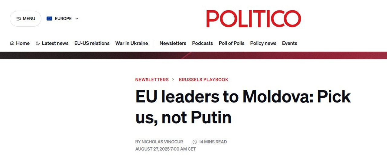 Politico scrie, la rândul său, că liderii UE urmează să transmită mesajul „alegeți-ne pe noi, nu pe Putin”. Totodată, vizita denotă cât de importantă a devenit R. Moldova în lupta pentru influență dintre Rusia și Uniunea Europeană, mai ales după ce președinta Maia Sandu a avertizat asupra tentativelor Rusiei de a controla R. Moldova prin cumpărarea voturilor și finanțări cu criptomonede.
