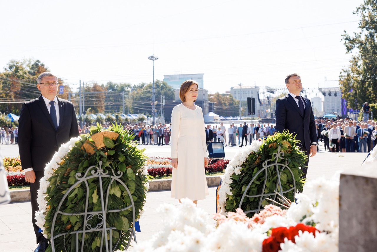 Молдова отмечает 34-ю годовщину провозглашения независимости. В этой связи президент Майя Санду, спикер Игорь Гросу, премьер-министр Дорин Речан, а также политики и общественные деятели возложили цветы к мемориальному комплексу «Вечность» и к памятнику Штефану чел Маре.