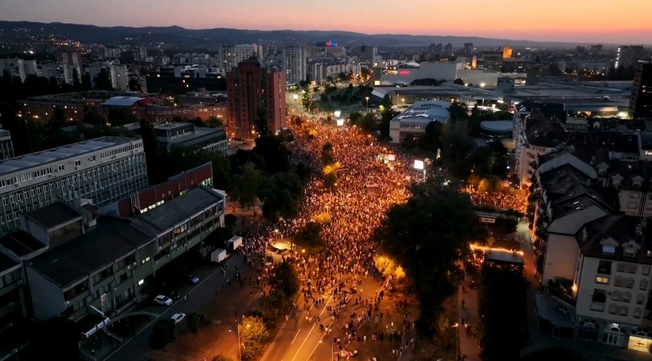 Vineri seara, mii de oameni s-au adunat în campusul universității din Novi Sad, majoritatea tineri sau studenți. A fost un nou protest organizat în speranța de a provoca alegeri anticipate pentru a-l înlăturara de la putere pe președintele Aleksandar Vucic și Partidul Progresist Sârb.