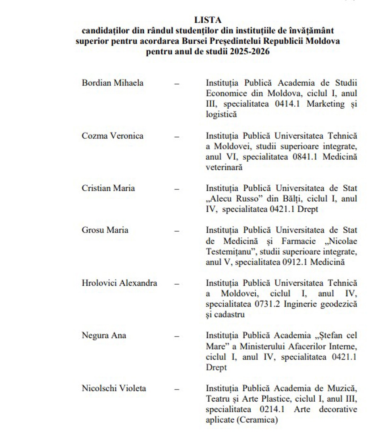 Zece studenți vor ridica o bursă de 3.860 de lei, iar cinci elevi din colegii și centre de excelență vor primi câte 2.995 de lei lunar, pe durata anului academic 2025-2026.