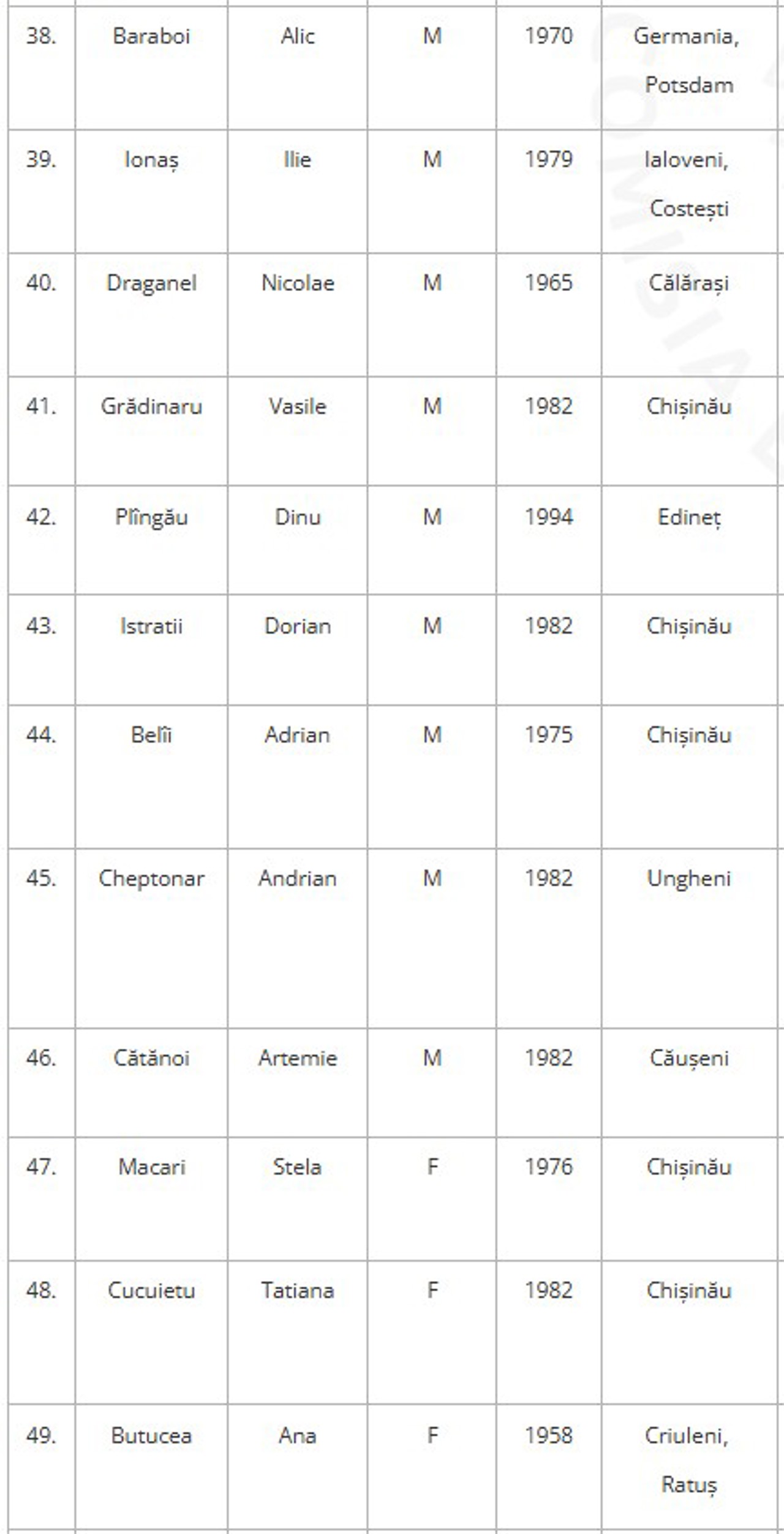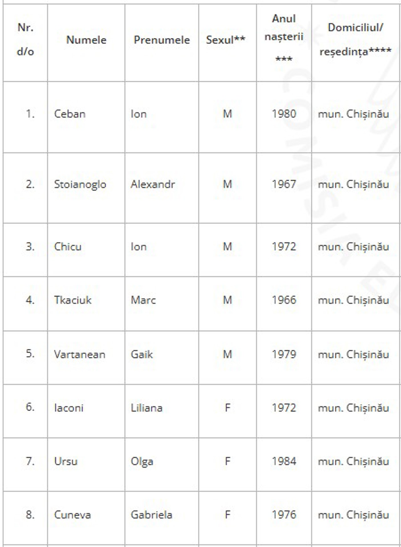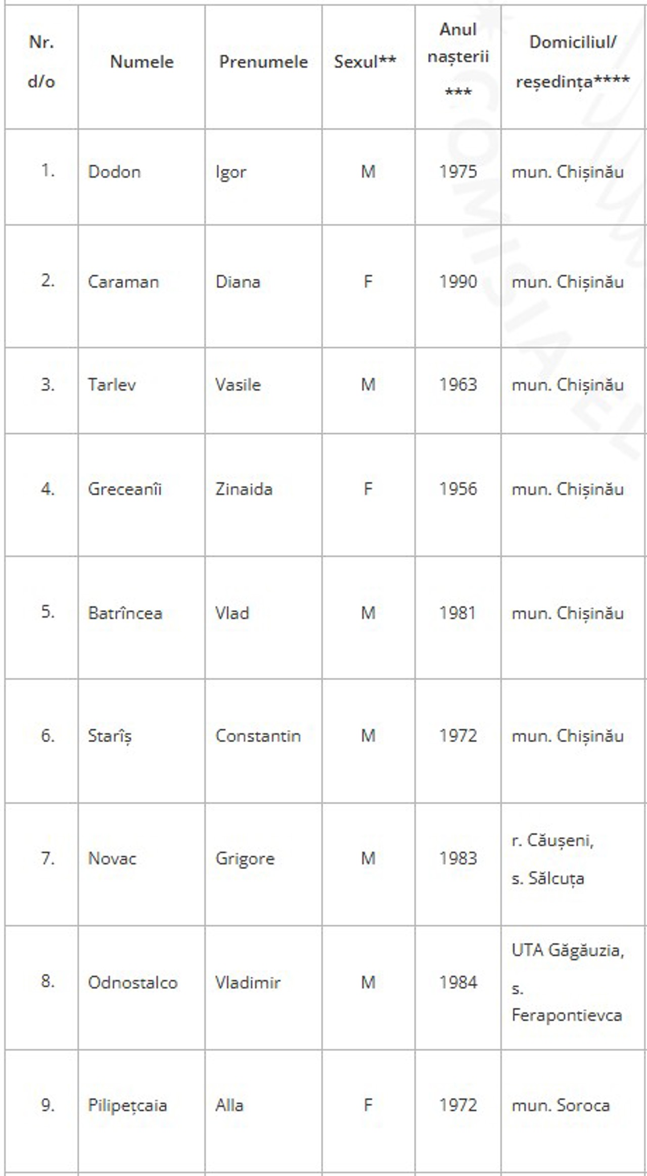Lista potențialilor deputați ai Partidului „Democrația Acasă”:
