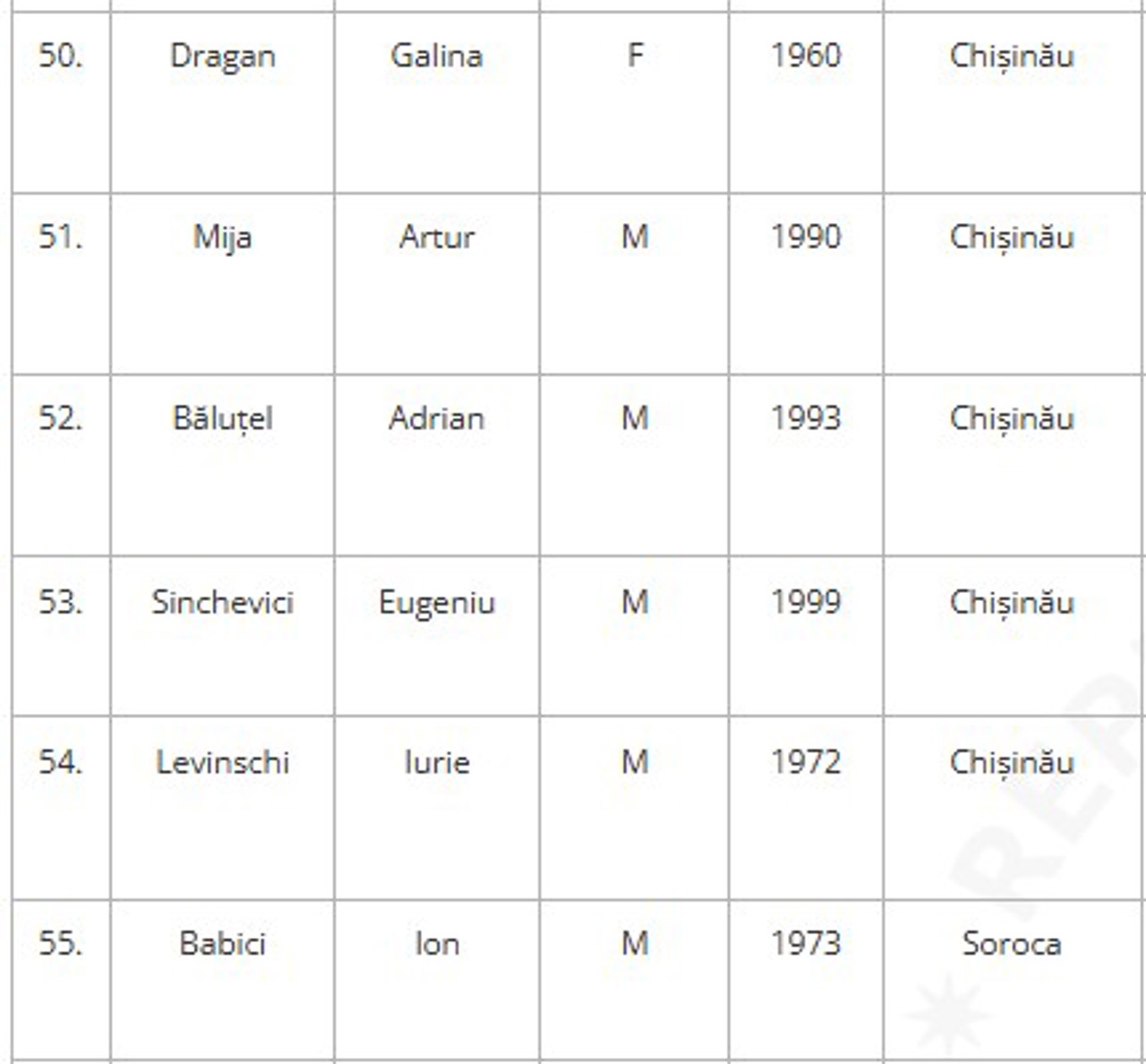 Lista potențialilor deputați ai Partidului Nostru:
