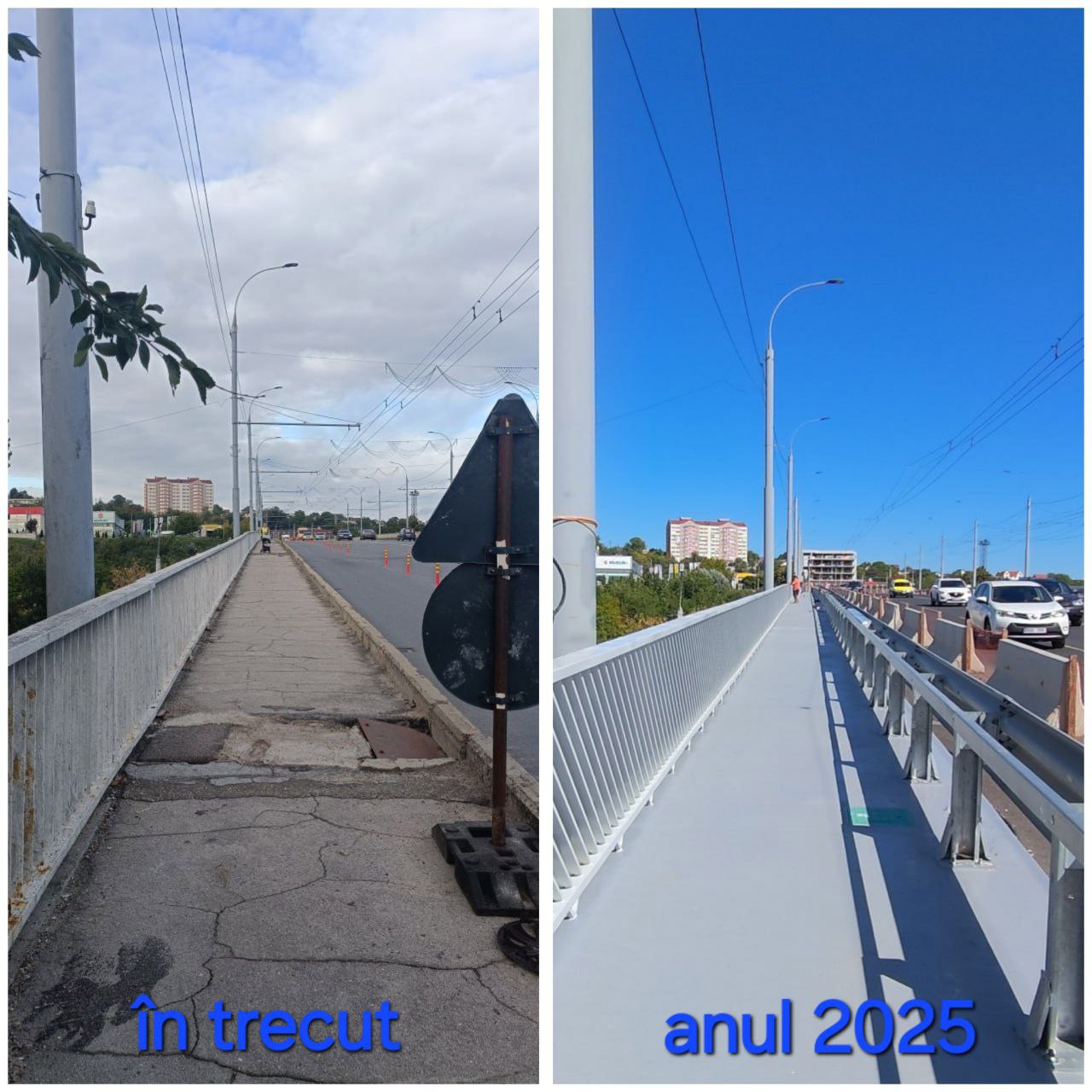 "The pedestrian section was widened to provide greater comfort and safety for those crossing. This bridge is one of the largest in the Republic of Moldova. It has six traffic lanes, two pedestrian sidewalks that were renovated, and railings were installed. Complex works were carried out," Gutnic stated.