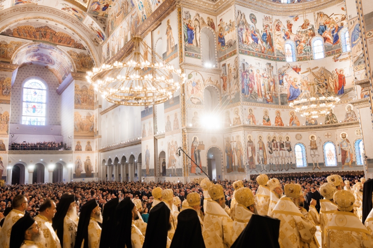În timpul slujbei de sfințire, în interiorul catedralei au acces doar invitații oficiali. Restul credincioșilor urmăresc slujba din exterior, pe ecranele special montate lângă treptelor de acces.