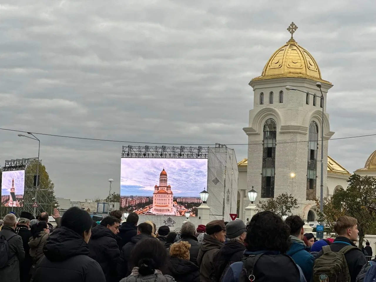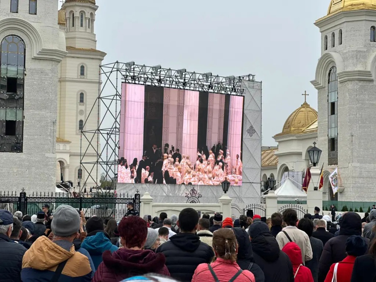 During the actual consecration service, only official guests have access inside the cathedral. The remaining worshipers are following the proceedings from outside, watching on screens specially mounted near the access steps.