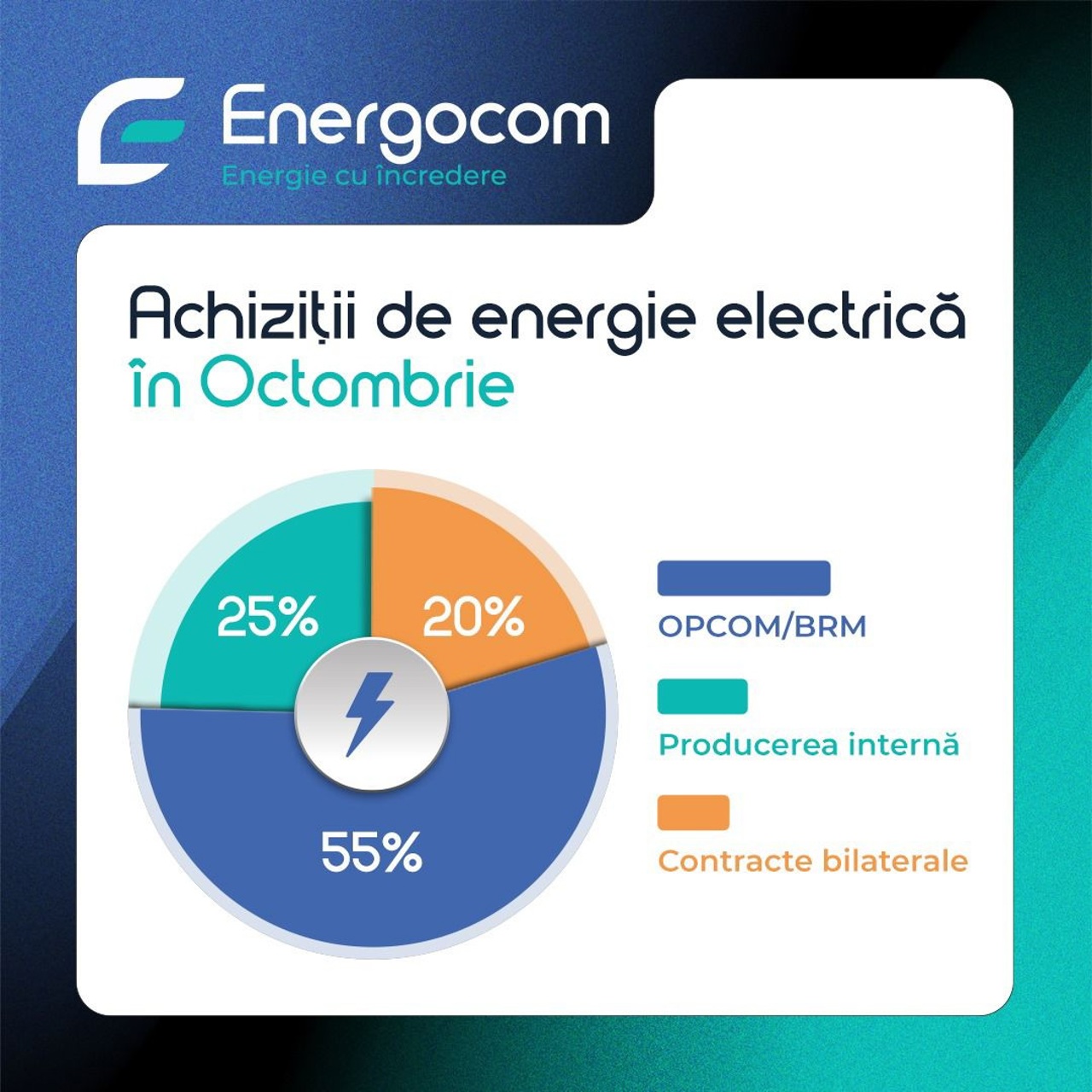 Din totalul achizițiilor, 20.39% au fost realizate prin contracte bilaterale cu furnizori și producători din România și Ucraina, iar 55.04% - prin intermediul platformelor de tranzacționare Bursa Română de Mărfuri (BRM) și OPCOM.