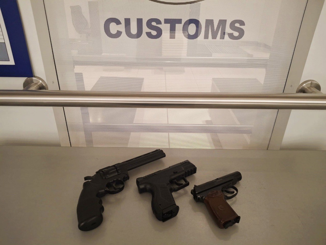 "В ходе проведения дистанционного досмотра багажа пассажиров с помощью рентгеновского оборудования в одном из чемоданов были обнаружены три пневматических оружия, которые не были задекларированы таможенным органам", — сообщили пресс-службы ведомств.
