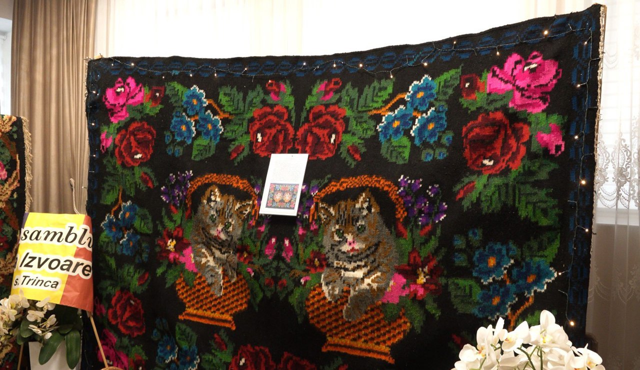 Am venit la expoziție cu covorul „Doi Motani Vioi”. De ce se numește anume așa? Pentru că, în serile lungi de iarnă, când mă culcam, o lăsam pe mama mea cu furca în brâu, torcând. Pregătea lână pentru covor. Acești motănei îi țineau de urât, ei sforăiau. Într-o zi, când lână era gata pentru țesutul covoarelor, motănei i-au încâlcit toată ața. Și ea s-a gândit în mintea ei, a mai chemat o vecină, au făcut schema covorului și i-au pus în coșuri, ca ei să fie acolo și cuminți, și vioi”, a rememorat istoria acestui covor Viorica Guțu, bibliotecară în satul Trinca, raionul Edineț.