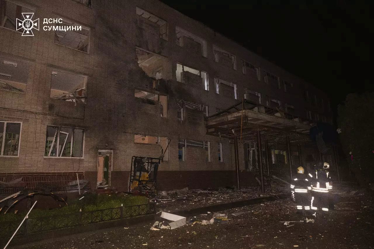 În orașul Sumî, dronele rusești au lovit o instituție de învățământ, provocând distrugeri la nivelul acoperișului și al unui perete. La etajul patru al clădirii s-a produs un incendiu, iar suflul exploziei a spart ferestrele și ușile corpului de studii.