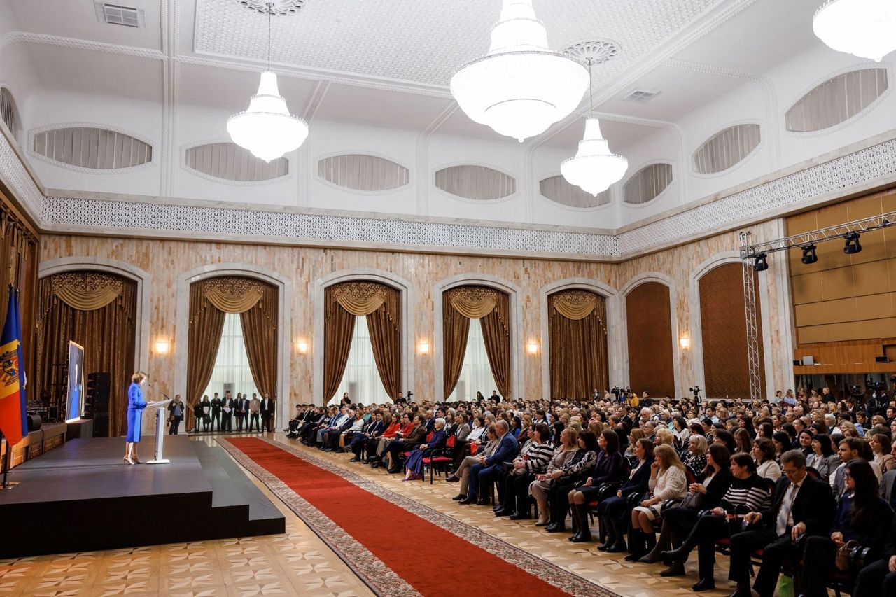 Președinta Maia Sandu a vorbit despre importanța domeniilor în care elevii au obținut rezultate - matematică, fizică, informatică, chimie, biologie, științe și inginerie, robotică, limbi străine - și a legat aceste competențe de provocările actuale.
