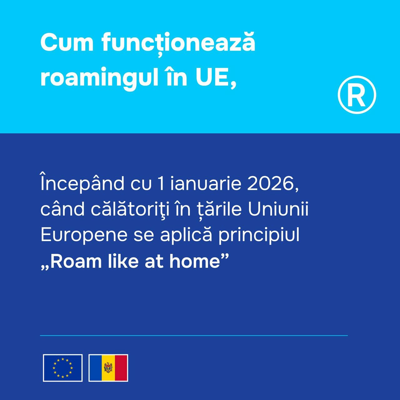 Cetățenii R. Moldova beneficiază, începând cu 1 ianuarie 2026, de roaming fără taxe în Uniunea Europeană (UE). „Roam like at home” (Roaming ca acasă - n.r.) îi scutește pe moldoveni de orice taxe suplimentare de roaming pentru apeluri, SMS sau internet mobil.