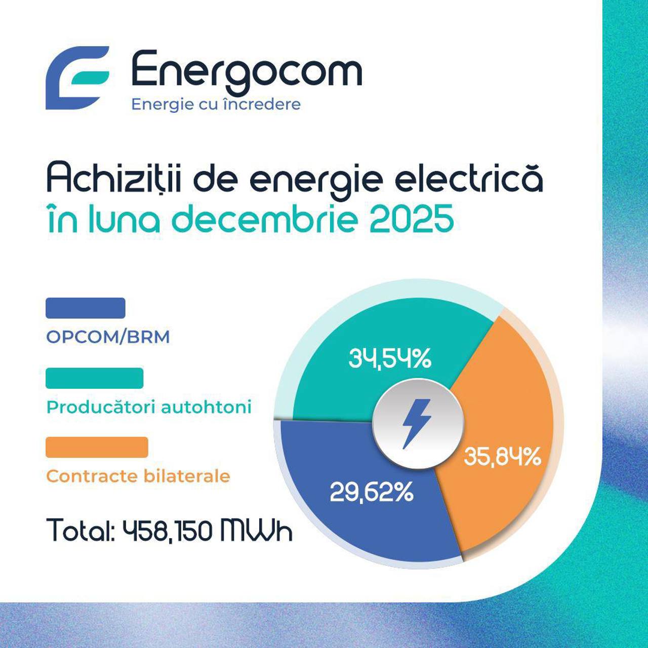 Energocom raportează că, în decembrie 2025, energia electrică a fost achiziționată cu un preț mediu de 132.57 de euro/MWh, cu 2.13 euro mai puțin decât în noiembrie.