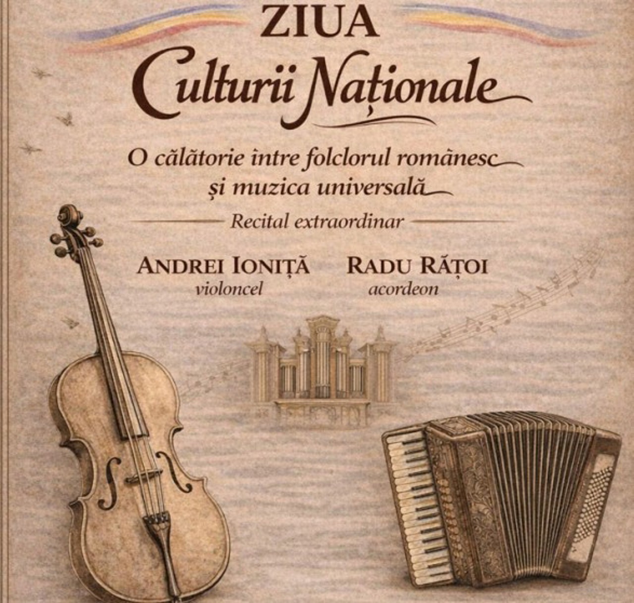 La Chișinău, cu ocazia Ziua Culturii Naționale, va avea loc un recital de muzică „Violoncel și acordeon – călătorie între folclorul românesc și muzica universală”. Concertul de excepție, dedicat promovării valorilor culturale românești și universale, va avea loc pe 17 ianuarie, la Sala cu Orgă.