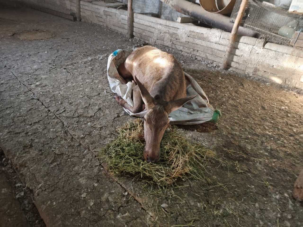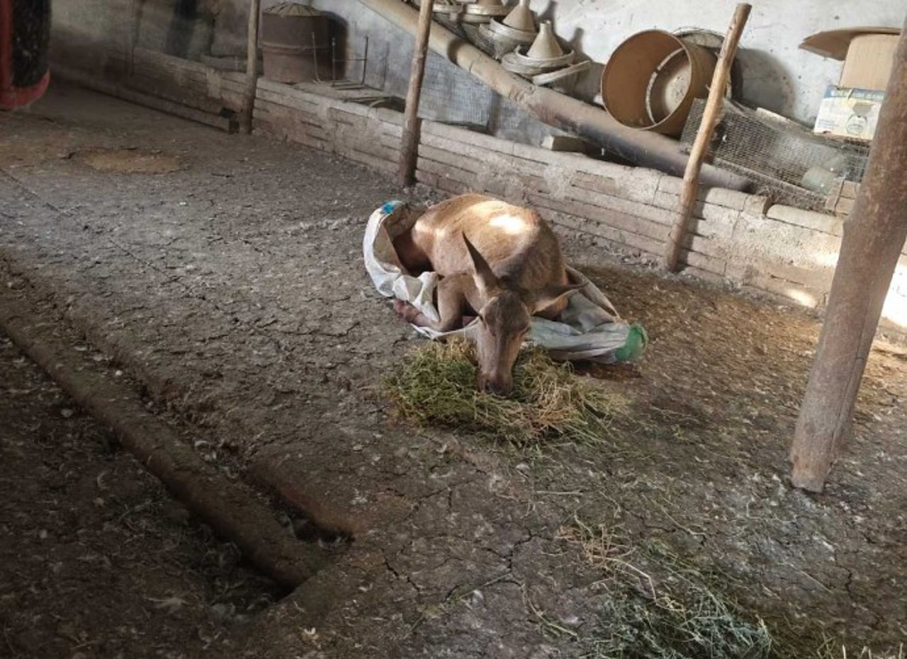 O căprioară prinsă în laț, salvată la Ștefan Vodă. Un picior era fracturat în proporție de 95% și i-a fost amputat