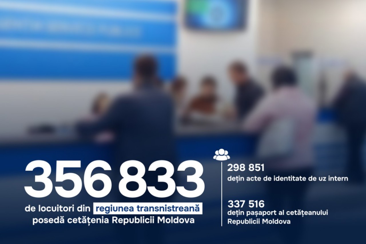 Datele Agenției Servicii Publice arată că, pe 31 decembrie 2025, erau luați în evidență 364.885 de locuitori ai regiunii transnistrene, dintre care 356.833 dețineau cetățenia Republicii Moldova.