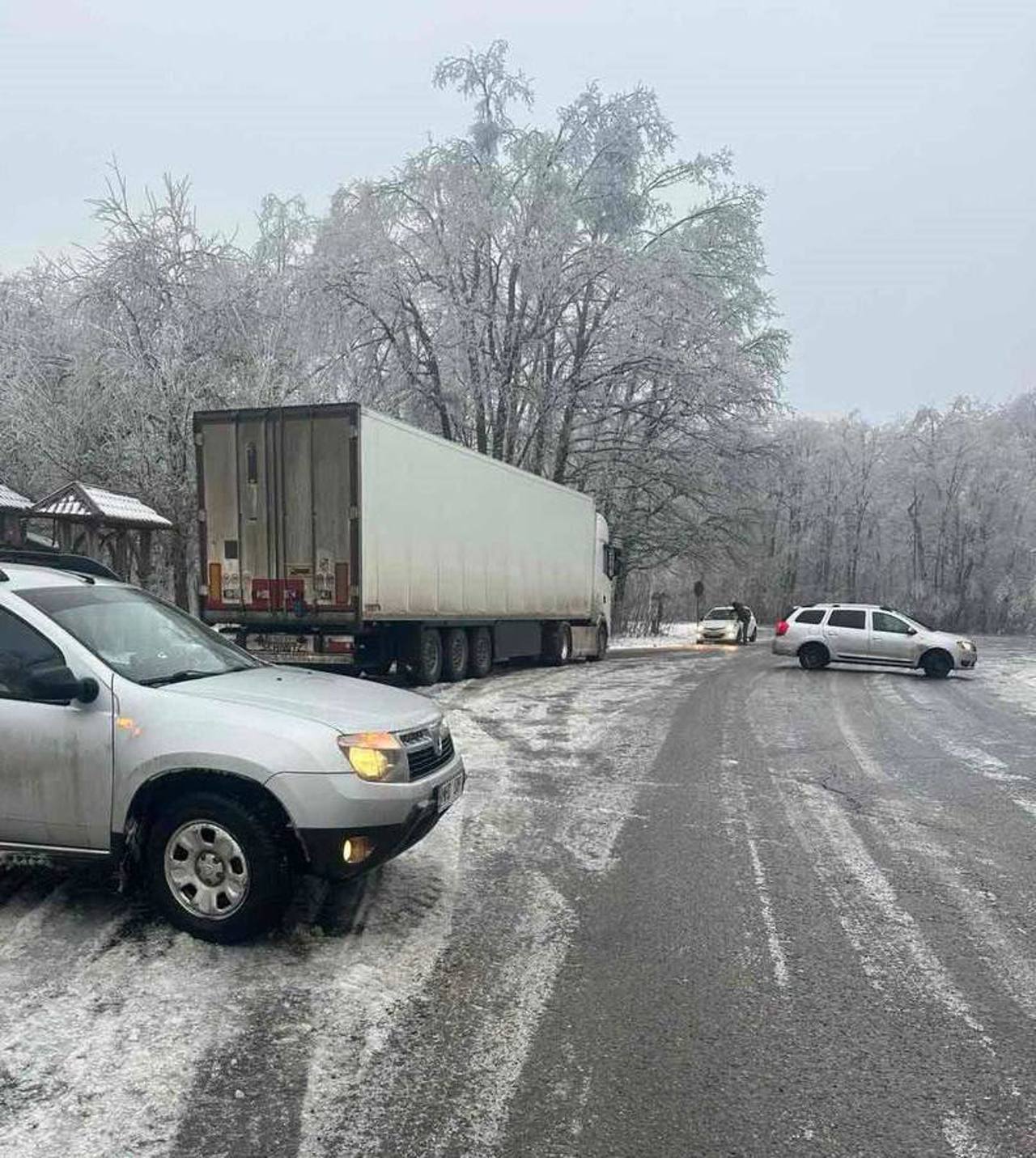 „Condițiile meteorologice sunt extrem de nefavorabile, fiind înregistrate ploi cu gheață, care determină formarea unui strat foarte dens de polei, ce face imposibilă circulația și urcarea pantelor”, avertizează Administrația Națională a Drumurilor.