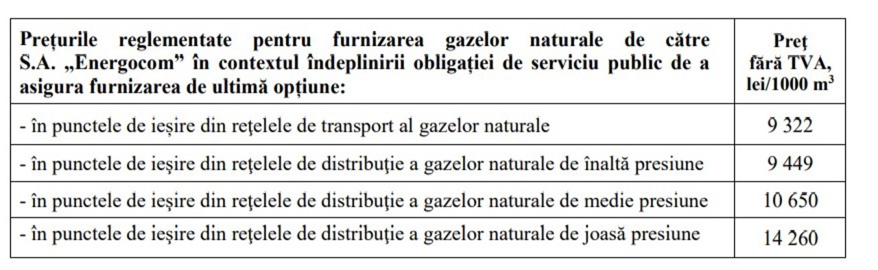 „Având în vedere că Energocom este un furnizor nou – nu a avut anterior obligații de serviciu public sau, mai simplu spus, nu a fost reglementat pentru furnizarea gazelor naturale – pentru acesta se aprobă toți indicatorii și toate costurile de la zero”, a explicat anterior directorul general al ANRE, Alexei Taran.