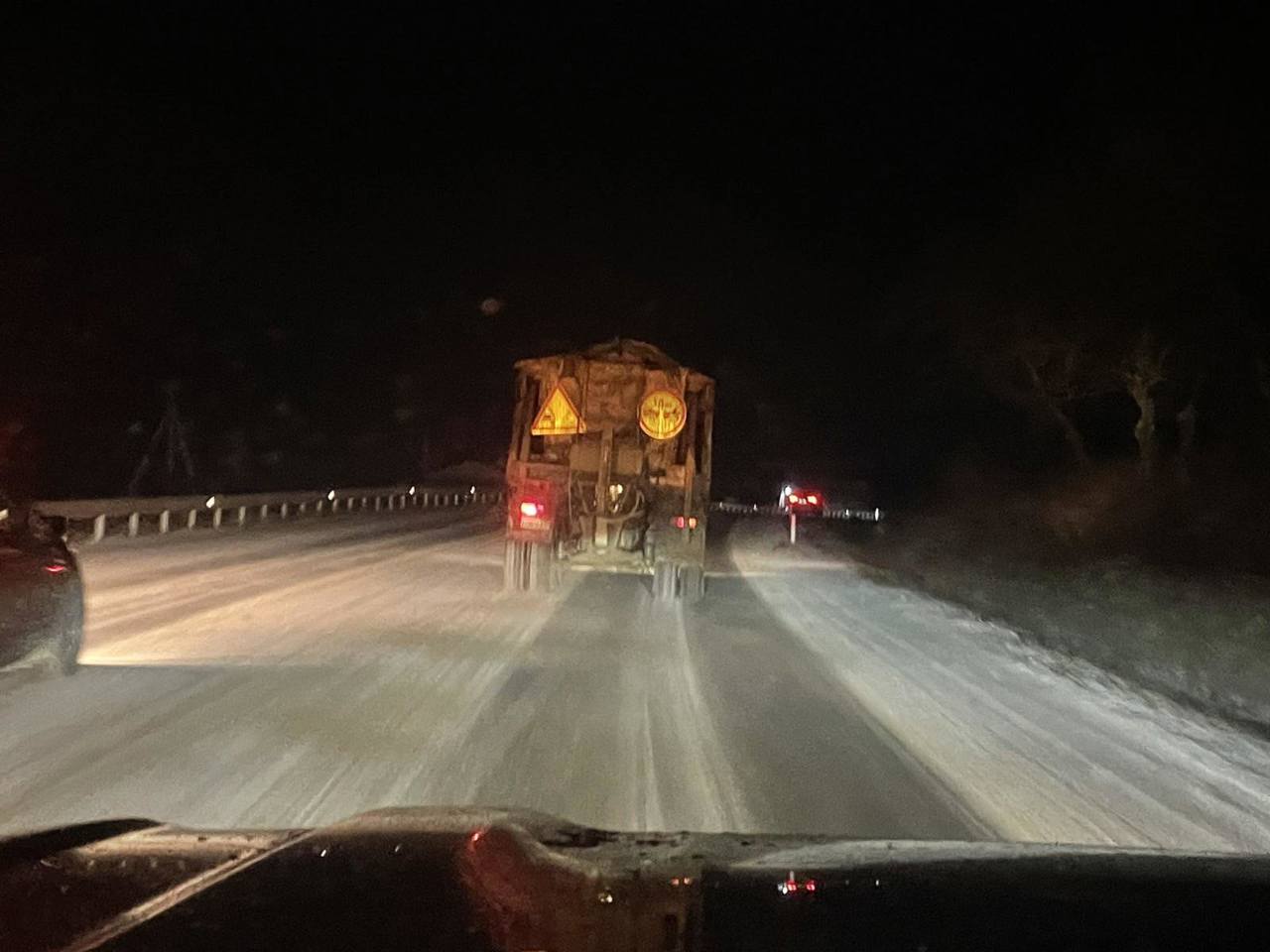 Partea carosabilă este umedă, pe alocuri cu polei și ghețuș. Peste 750 de tone de material antiderapant, împrăștiate în timpul nopții