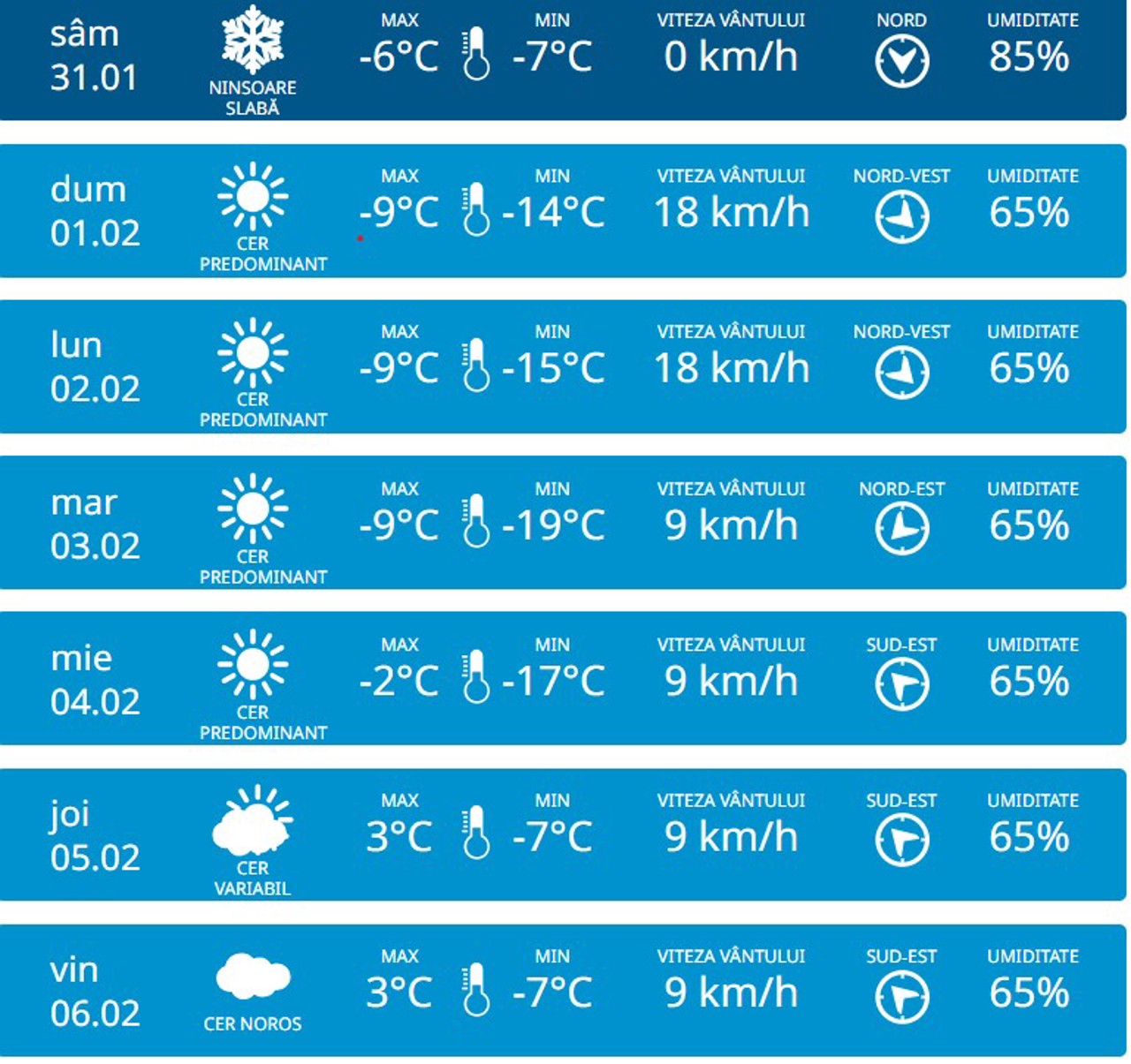 Potrivit Serviciului Hidrometeorologic de Stat, după perioada de umezeală și temperaturi mai ridicate aduse de un ciclon mediteraneean, vremea se va răci accentuat în Republica Moldova. Temperaturile vor începe să scadă treptat, iar în intervalul 1-4 februarie sunt prognozate minime nocturne de până la -19 de grade Celsius, iar ziua vor fi până la -9 grade Celsius.