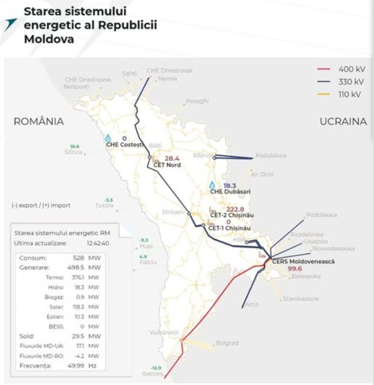 Ministrul a menționat că 376 MW au fost generați de centralele electrice cu termoficare de la Termoelectrica și CET Nord, peste 118 MW de panourile fotovoltaice, peste 18 MW și, respectiv, 10 MW de hidrocentrale și eoliene.