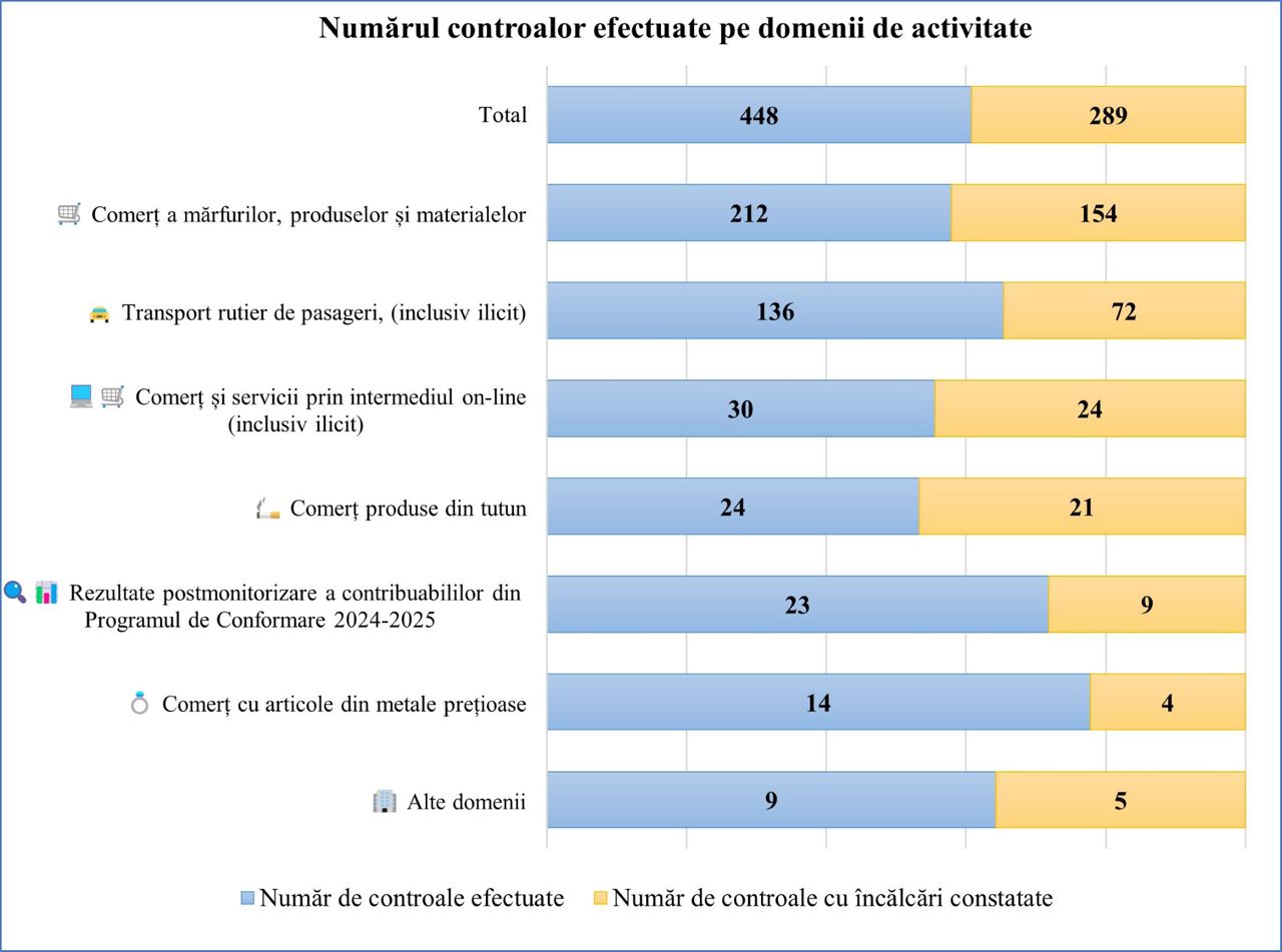 Datele preliminare arată că, în luna ianuarie 2026, au fost efectuate aproximativ 448 de controale fiscale operative în urma cărora au fost constatate încălcări ale legislației în 289 de cazuri.