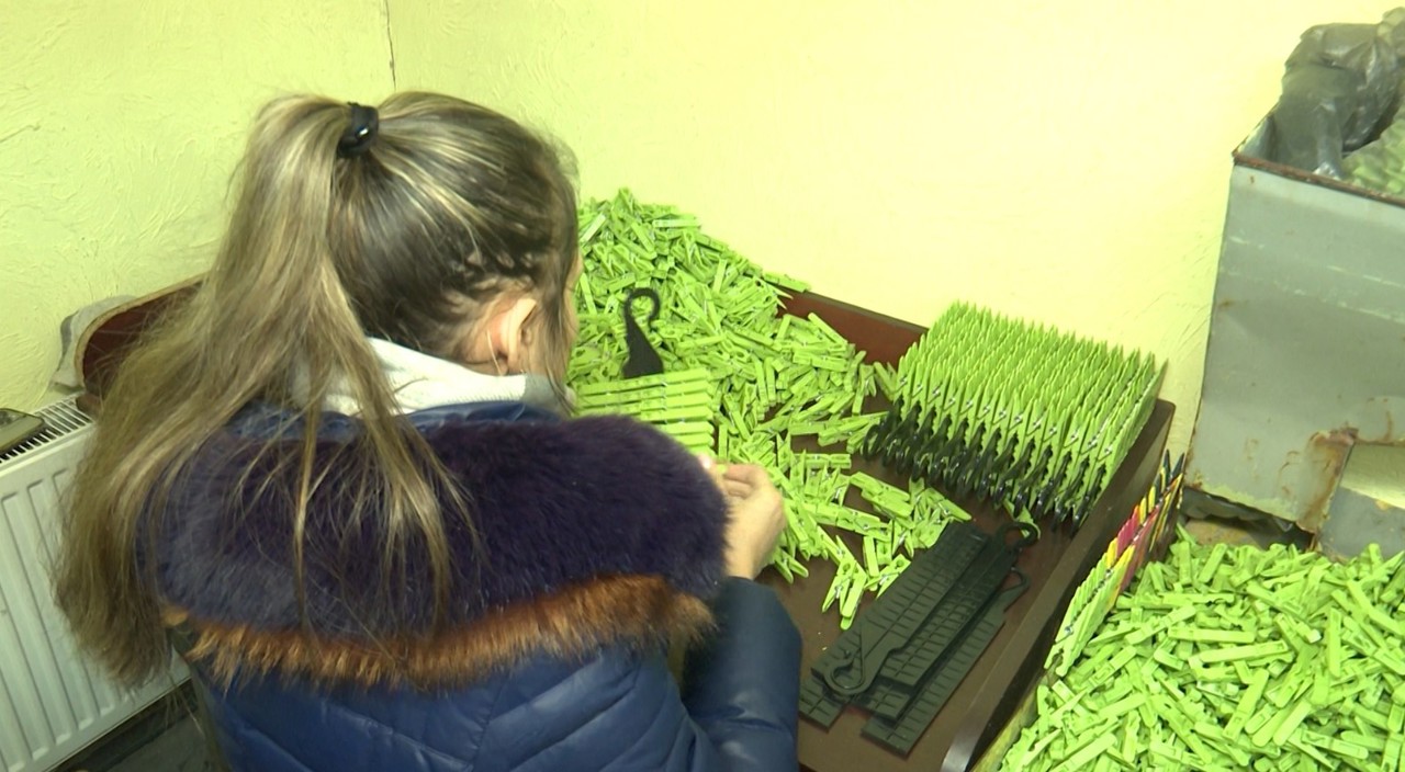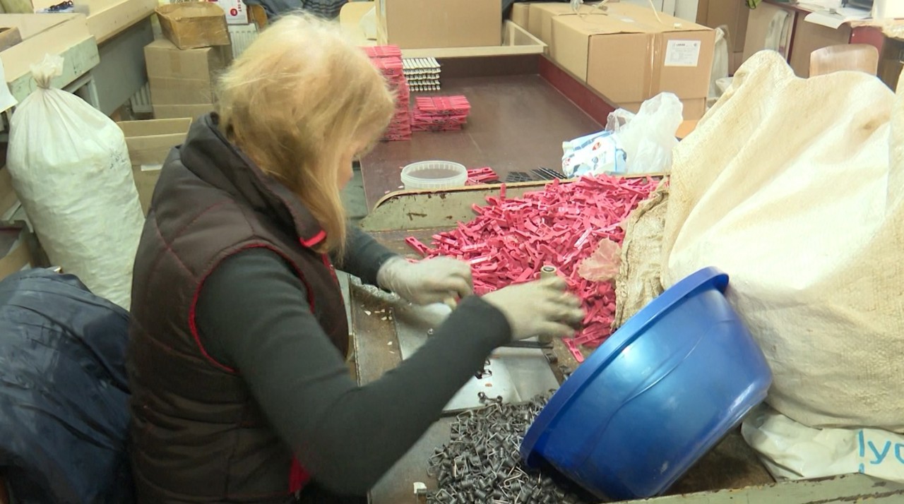 Fabrica lucrează la turații maxime. De exemplu, un angajat trebuie să facă într-o zi 1.700 de clești pentru haine.