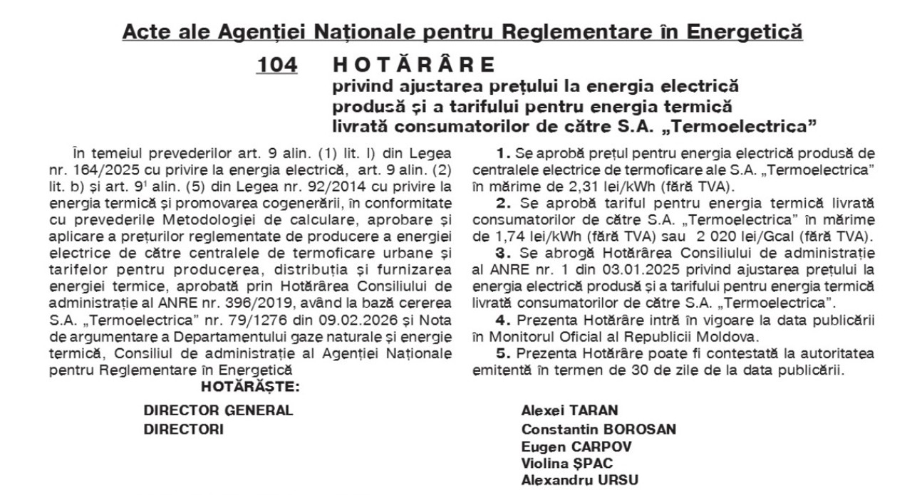 Din 13 februarie, consumul de energie termică este calculat la tarife noi. Chișinăuienii vor plăti mai puțin pentru căldură decât până acum, în timp ce la Bălți serviciile se scumpesc. Au fost operate ajustări și în alte localități din țară, noile tarife fiind publicate în Monitorul Oficial al Republicii Moldova.