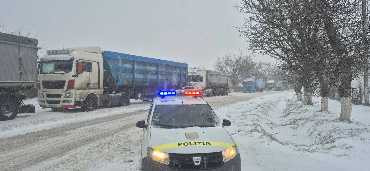 Circulația vehiculelor de mare tonaj este temporar sistată pe traseul Căușeni-Anenii Noi, în contextul condițiilor meteo dificile. Autoritățile solicită conducătorilor auto să respecte semnalizarea rutieră și indicațiile polițiștilor aflați în teren, pentru a preveni incidentele și pentru a asigura siguranța traficului.