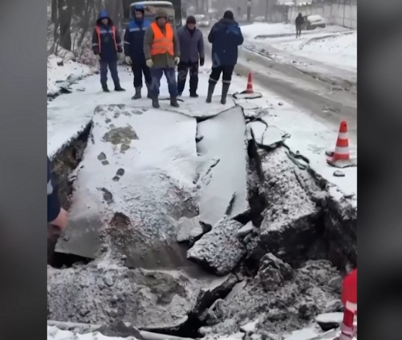 Tot astăzi, pe o stradă care intersectează Grădina Botanică, o porțiune de drum s-a surpat. Și în acest caz, muncitorii spun că de vină ar fi temperaturile scăzute care au afectat stratul de asfalt.