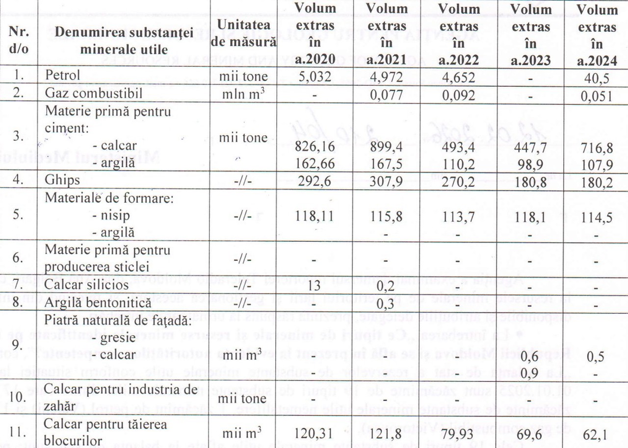Potrivit Agenției pentru Geologie și Resurse Minerale, în topul extragerilor se mențin rocile de nisip și prundiș, însă în 2024 volumul extras a constituit aproape 2.065 de mii de tone, fiind cea mai mică valoare înregistrată din perioada menționată.