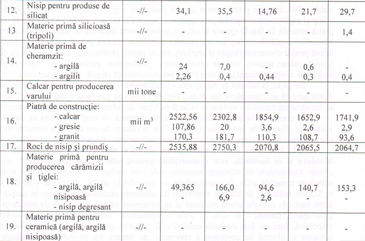 Locul trei este ocupat de materia primă pentru ciment (calcar și argilă), cu un volum de 824.7 mii de tone.