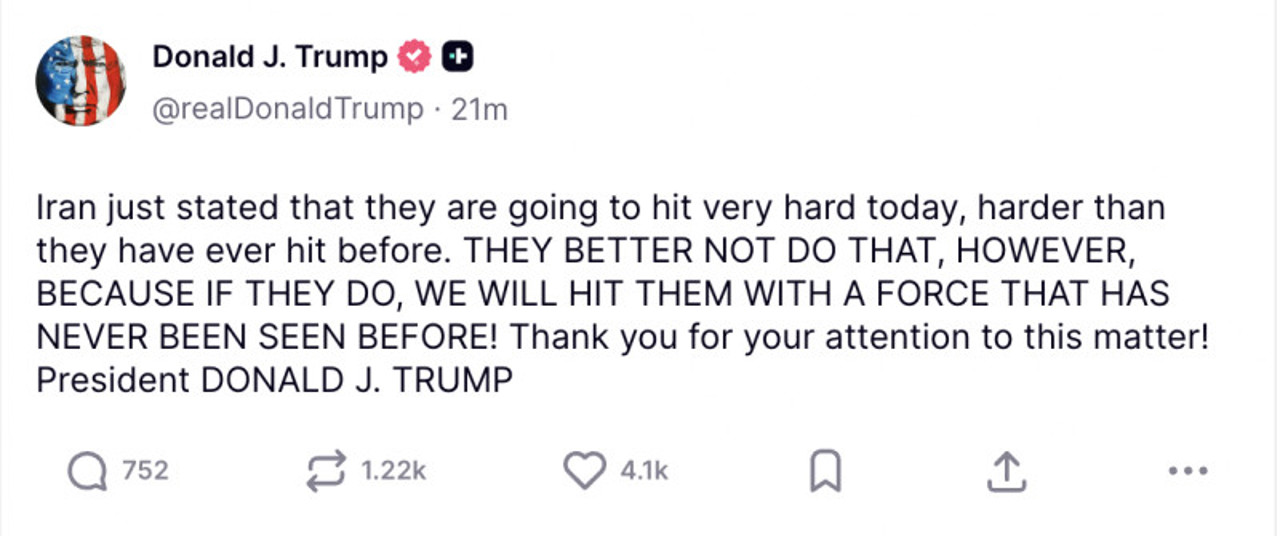 Într-un mesaj publicat pe rețeaua sa socială, Donald Trump avertizează că Iranul ar putea lovi „mai puternic ca niciodată” duminică, la o zi după moartea ayatollahului Ali Khamenei, și amenință că va răspunde „cu o forță nemaiîntâlnită”.
