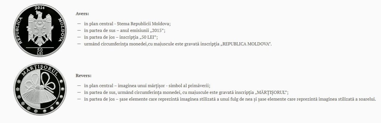 O altă monedă comemorativă din seria „Sărbătorile, cultura, tradițiile Moldovei” - „Mărțișorul”, a fost pusă în circulație din 23 februarie 2015.