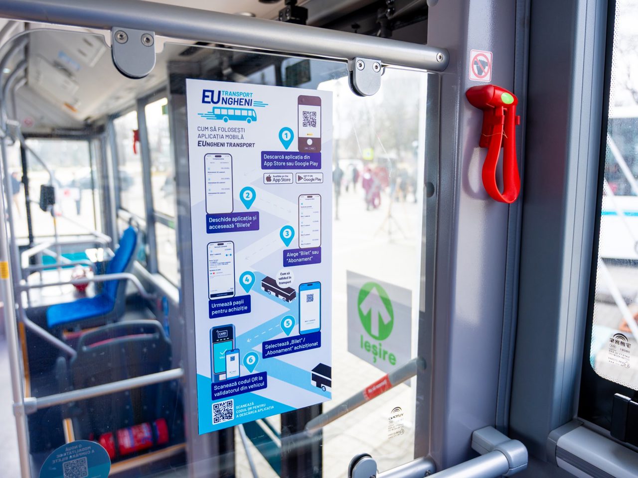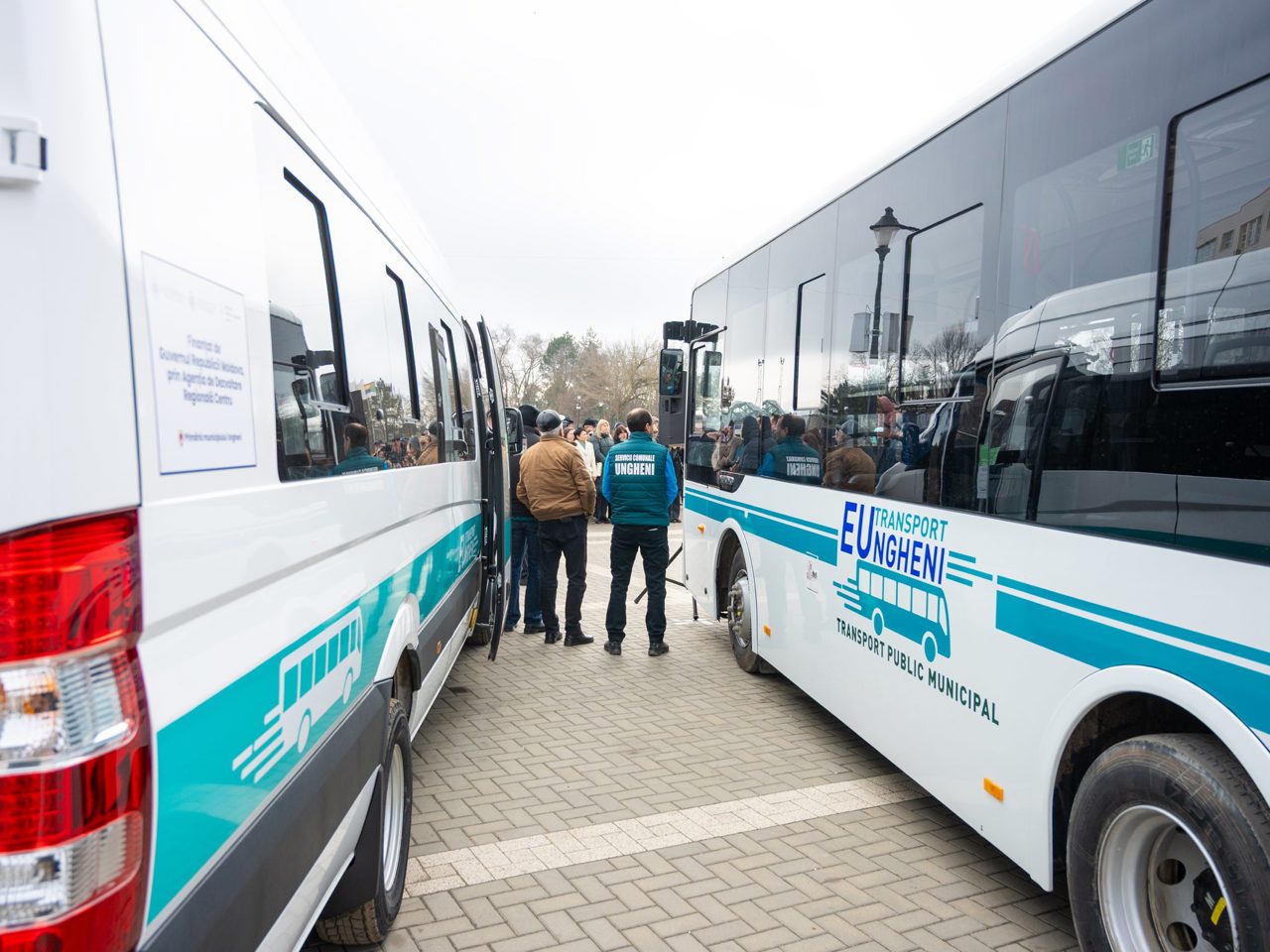 More than 30,000 residents of Ungheni and nearby areas can travel using modern buses and minibuses that support electronic payments and real-time route tracking. The transport network consists of 14 minibuses with 30-seat capacity and four buses with 60-seat capacity, offering four different routes. Buses operate with service intervals of five to seven minutes, and the daily schedule runs from 06:00 to 23:30.