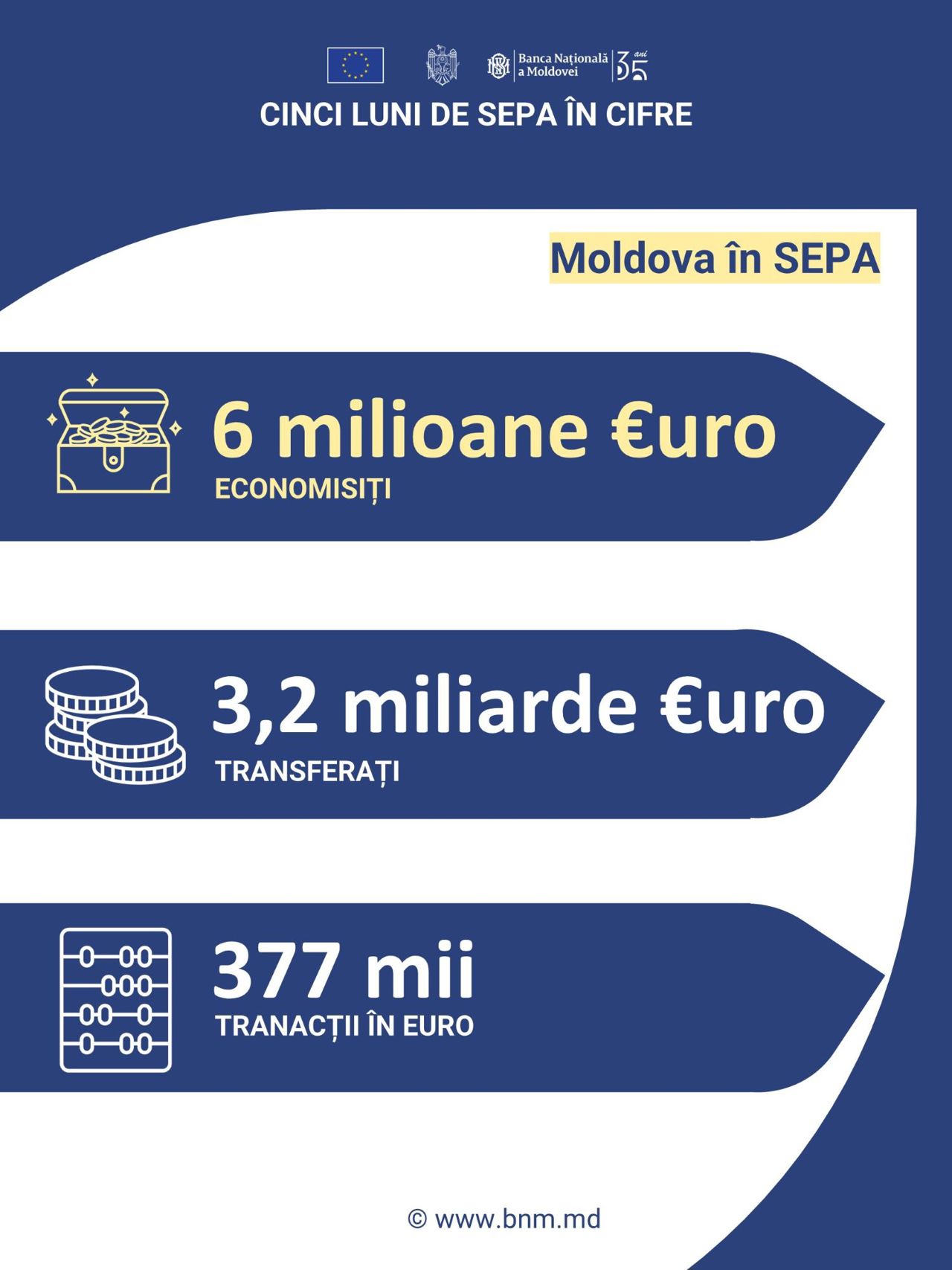 Moldovan citizens have saved over 6 million euros through transfers made within the Single Euro Payments Area (SEPA). One year after its implementation, Anca Dragu, the governor of the National Bank of Moldova (BNM), stated that SEPA has become the primary channel for cross-border euro payments in the Republic of Moldova. This has significantly transformed the way money moves to and from Europe.